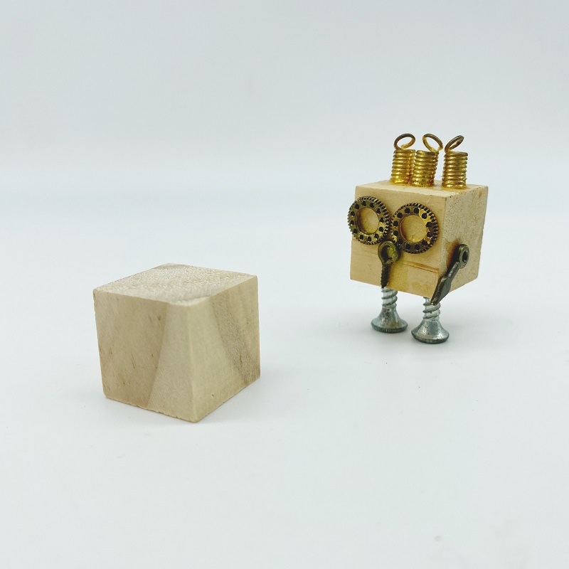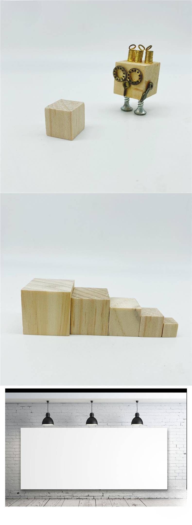 나무 블록 수제 DIY Steampunk 작은 로봇 정육면체 빌딩 블록 수학 교육 보조 건물 모델 재료