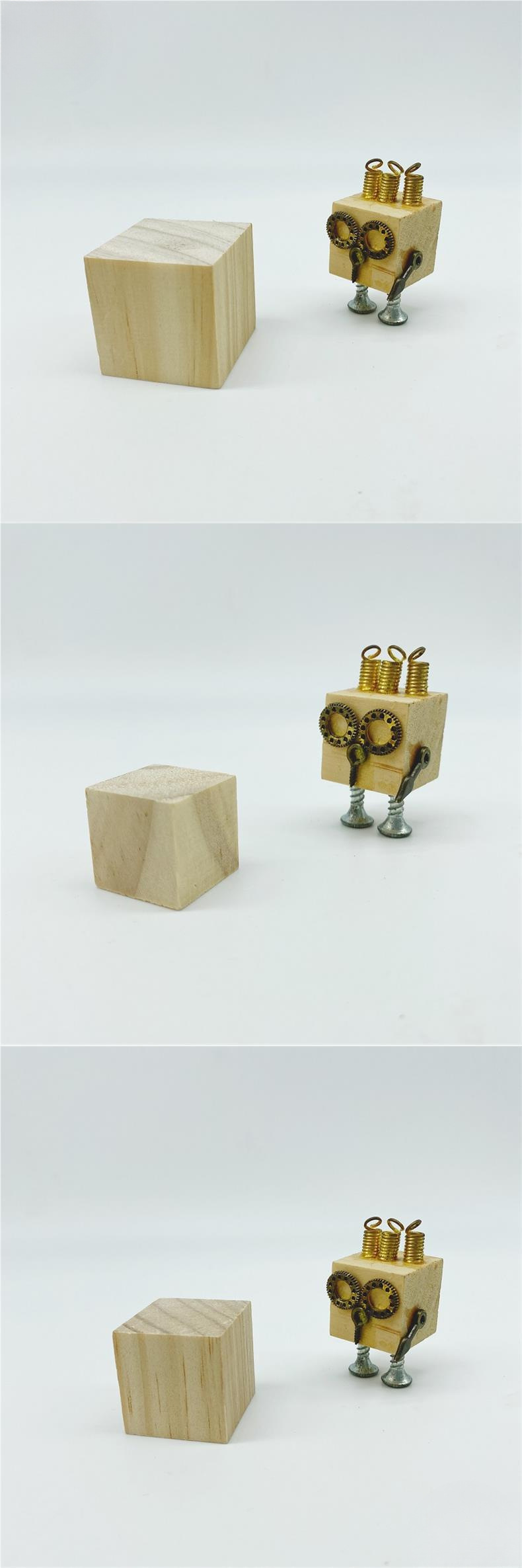 나무 블록 수제 DIY Steampunk 작은 로봇 정육면체 빌딩 블록 수학 교육 보조 건물 모델 재료스토어 가기