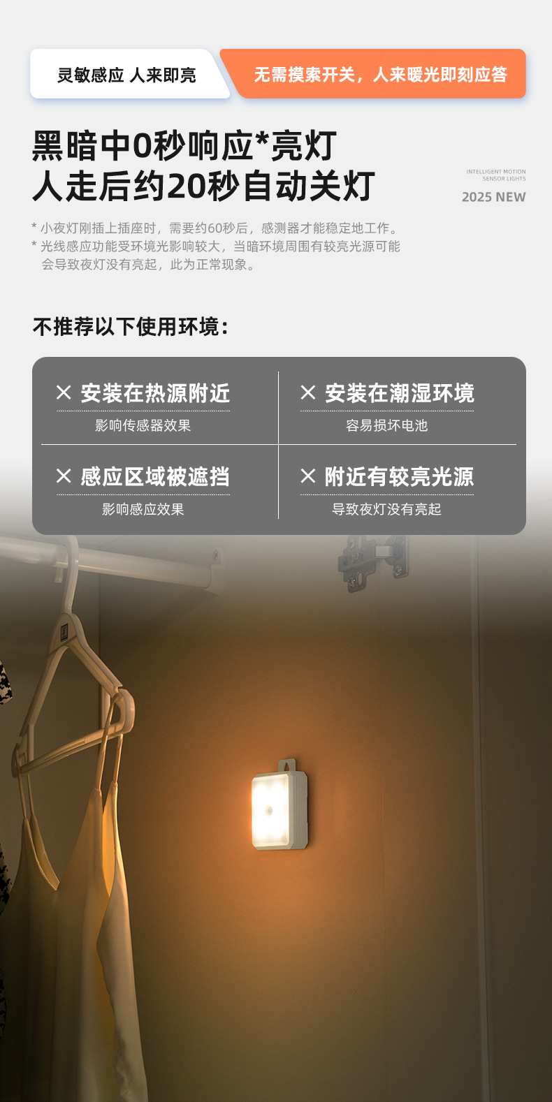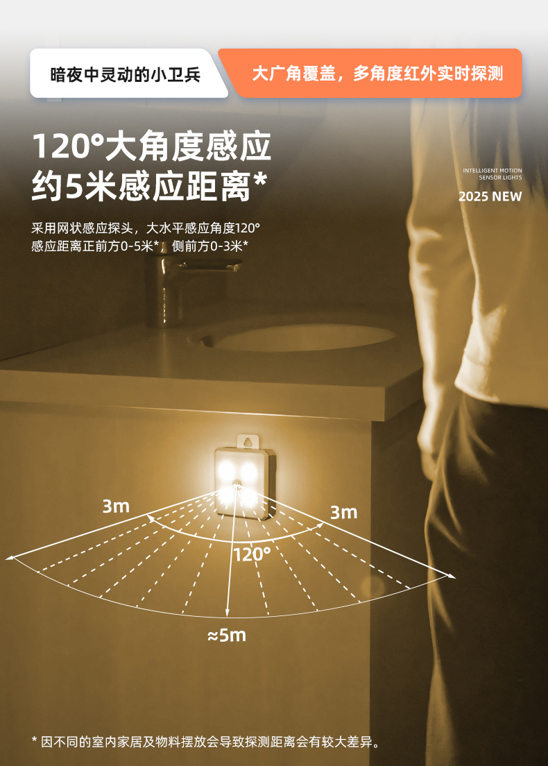 Led 인체 유도 야간 조명 침실 입구 화장실 주방 캐비닛 건전지 자석 야간 수유 램프