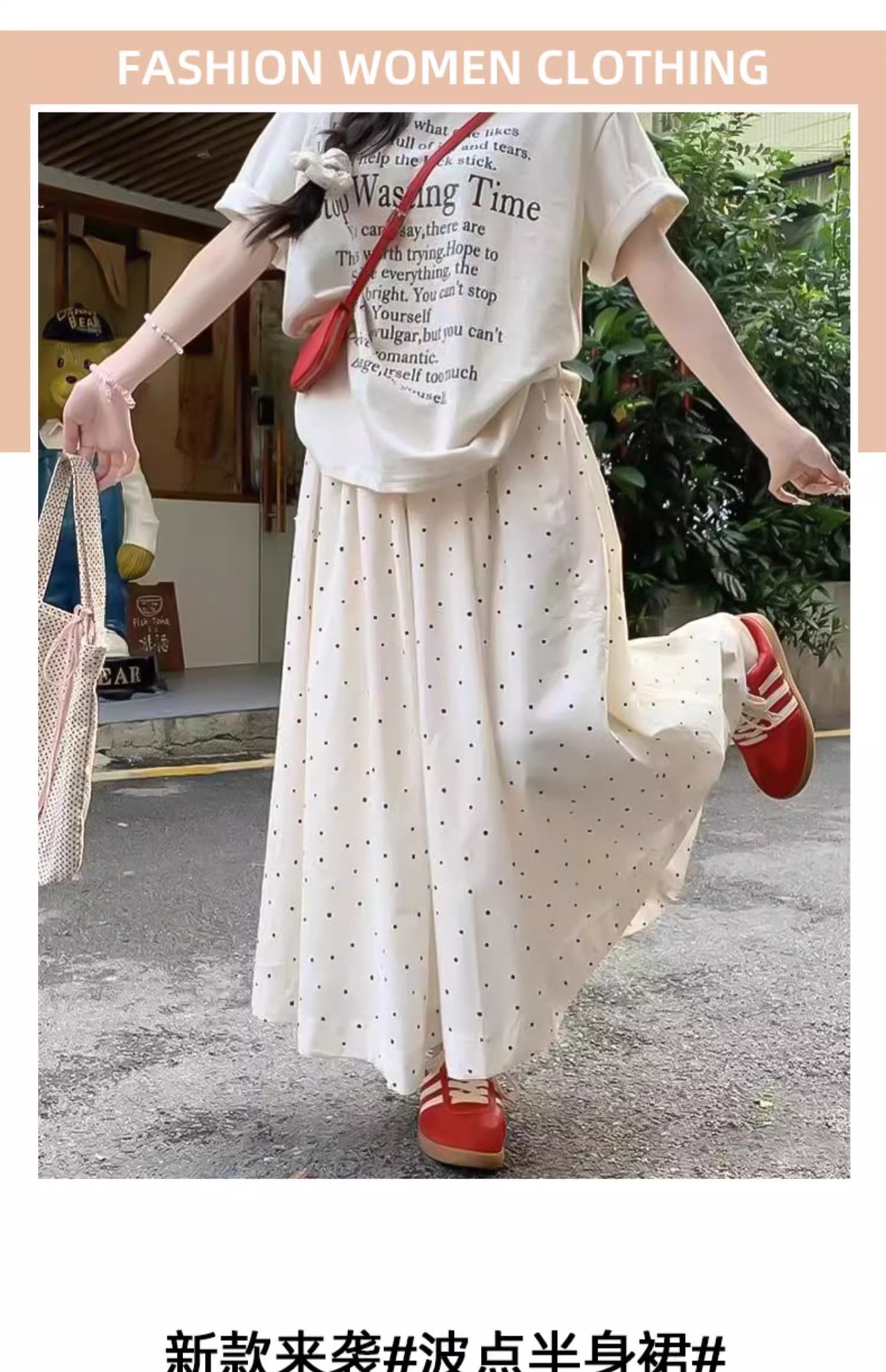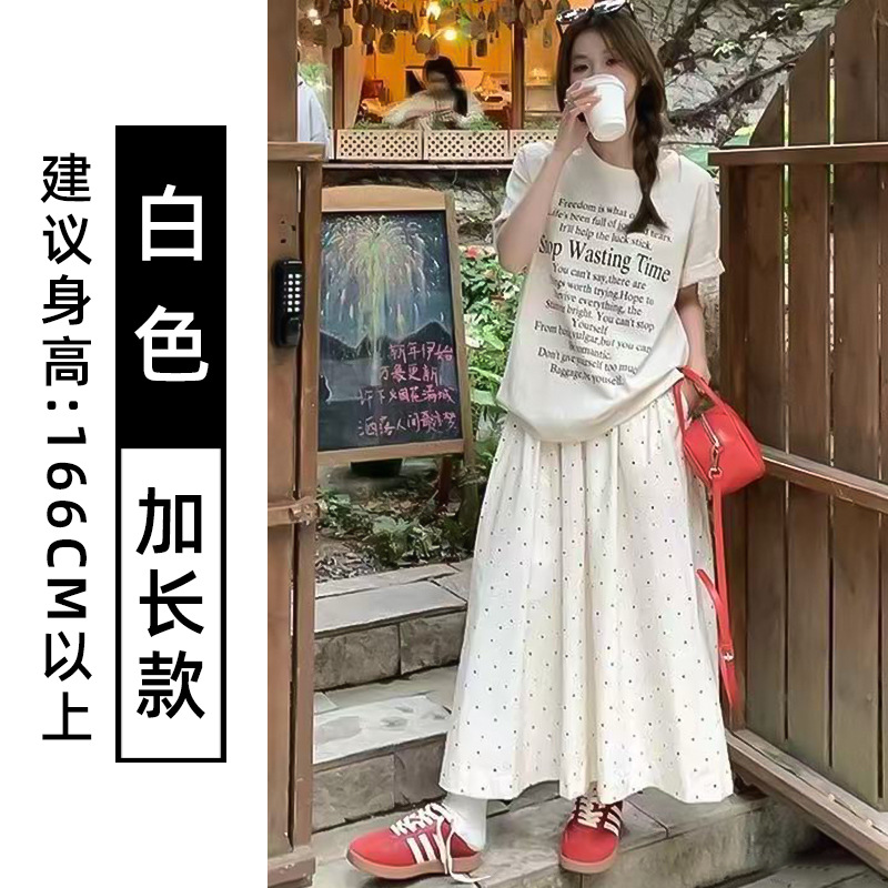 화이트 폴카 도트 스커트 여자 2025 년 여름 새로운 높은 허리 슬리밍 A 라인 긴 스커트 한국 스타일 게으른 스타일 케이크 스커트스토어 가기