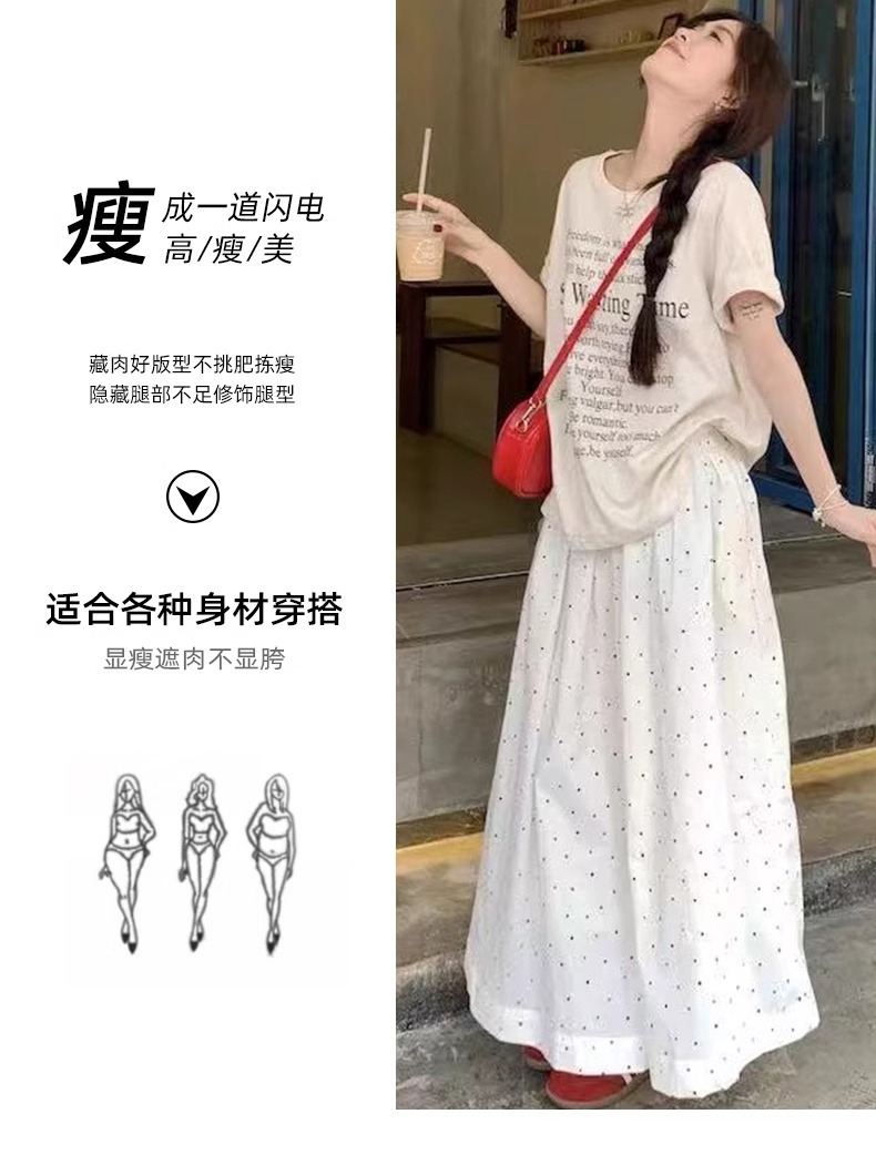 화이트 폴카 도트 스커트 여자 2025 년 여름 새로운 높은 허리 슬리밍 A 라인 긴 스커트 한국 스타일 게으른 스타일 케이크 스커트