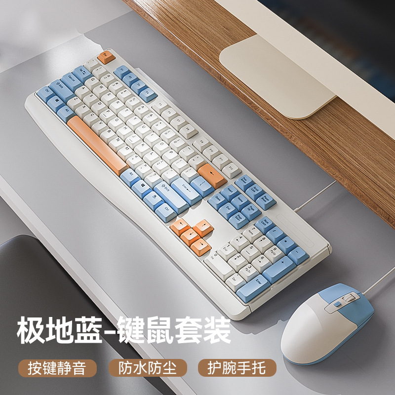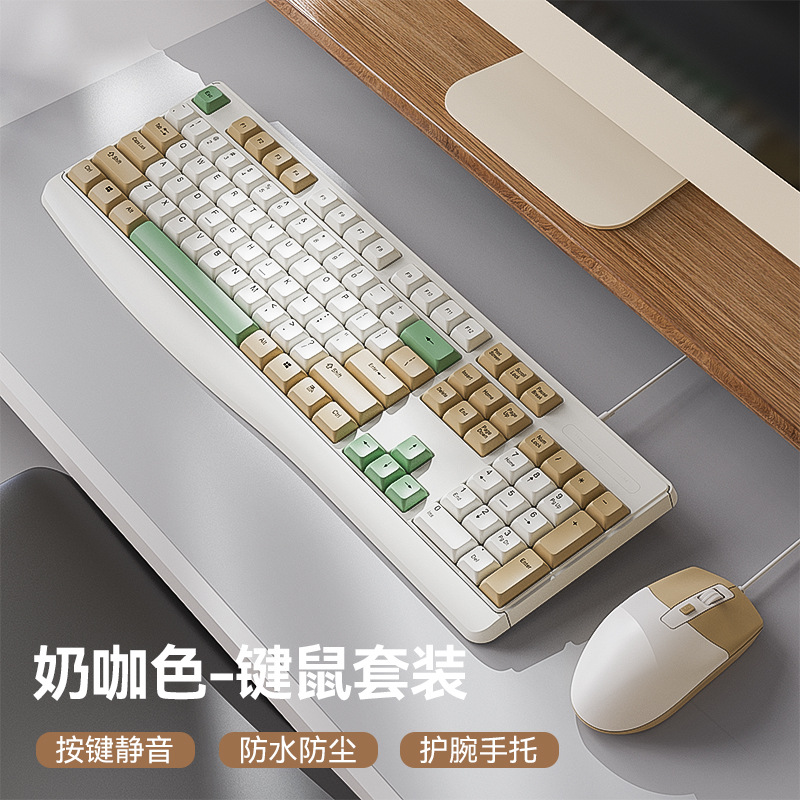 매우 조용한 기계식 느낌 키보드 및 마우스 세트 노트북 데스크탑 외부 키보드 및 마우스 소녀 사무실 도매스토어 가기