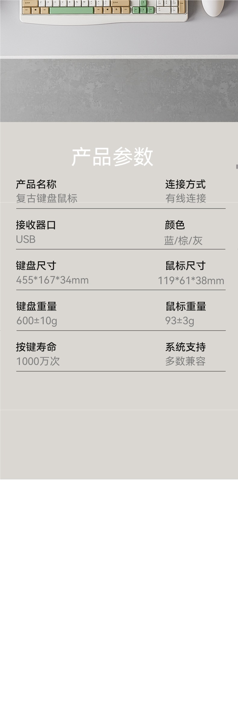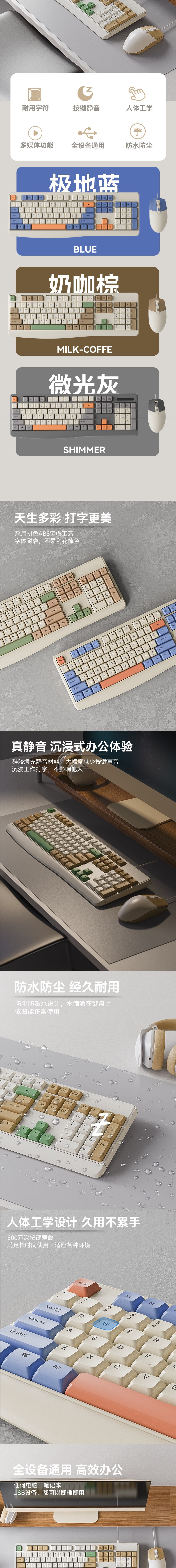 • 밀크 커피 브라운/유선 키보드 및 마우스 세트 [방수 및 방진/버튼 음소거/내구성 및 내마모성]