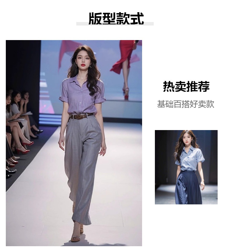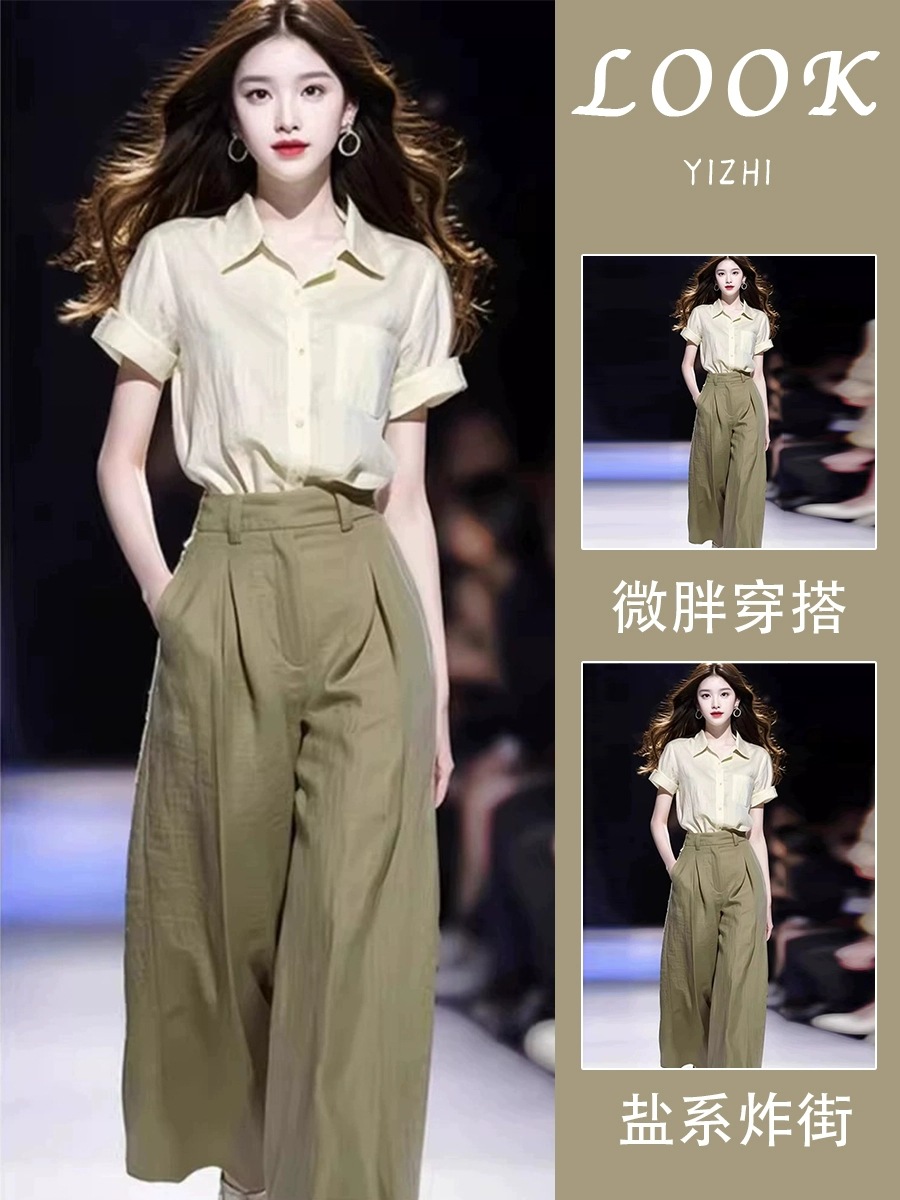 편안한 느낌의 세트와 함께 여름 원피스 슬림 짧은 소매 셔츠 넓은 다리 바지 튀긴 거리 나이 감소 패션 세트 여성스토어 가기