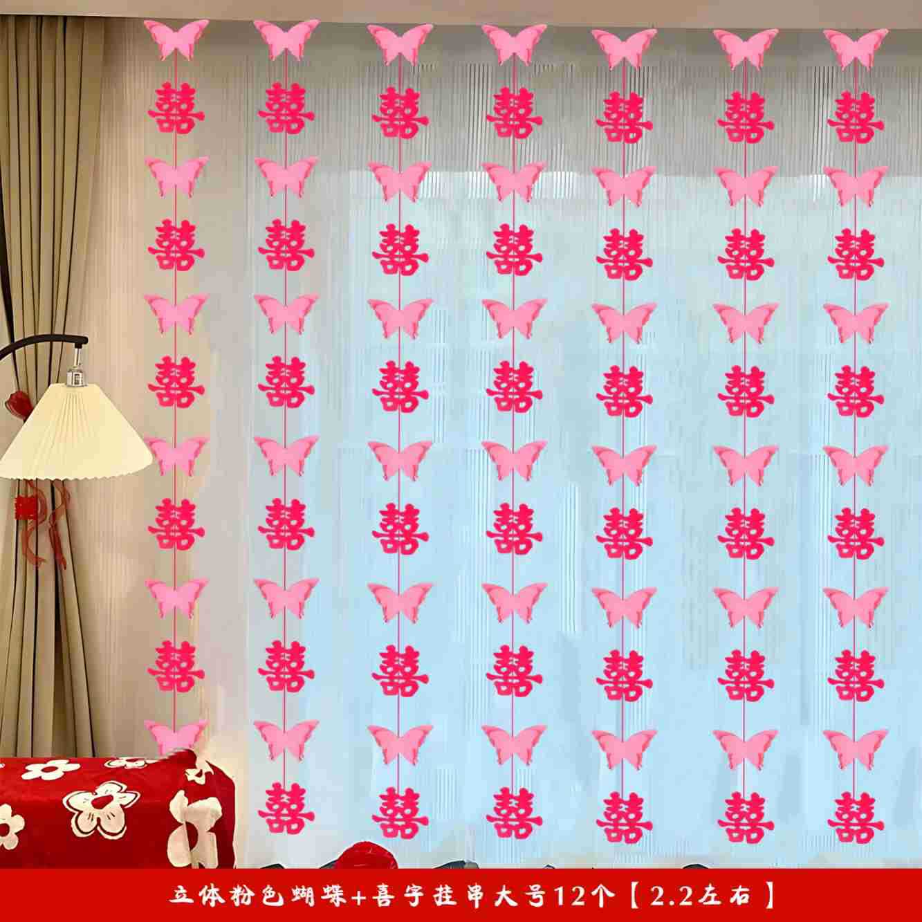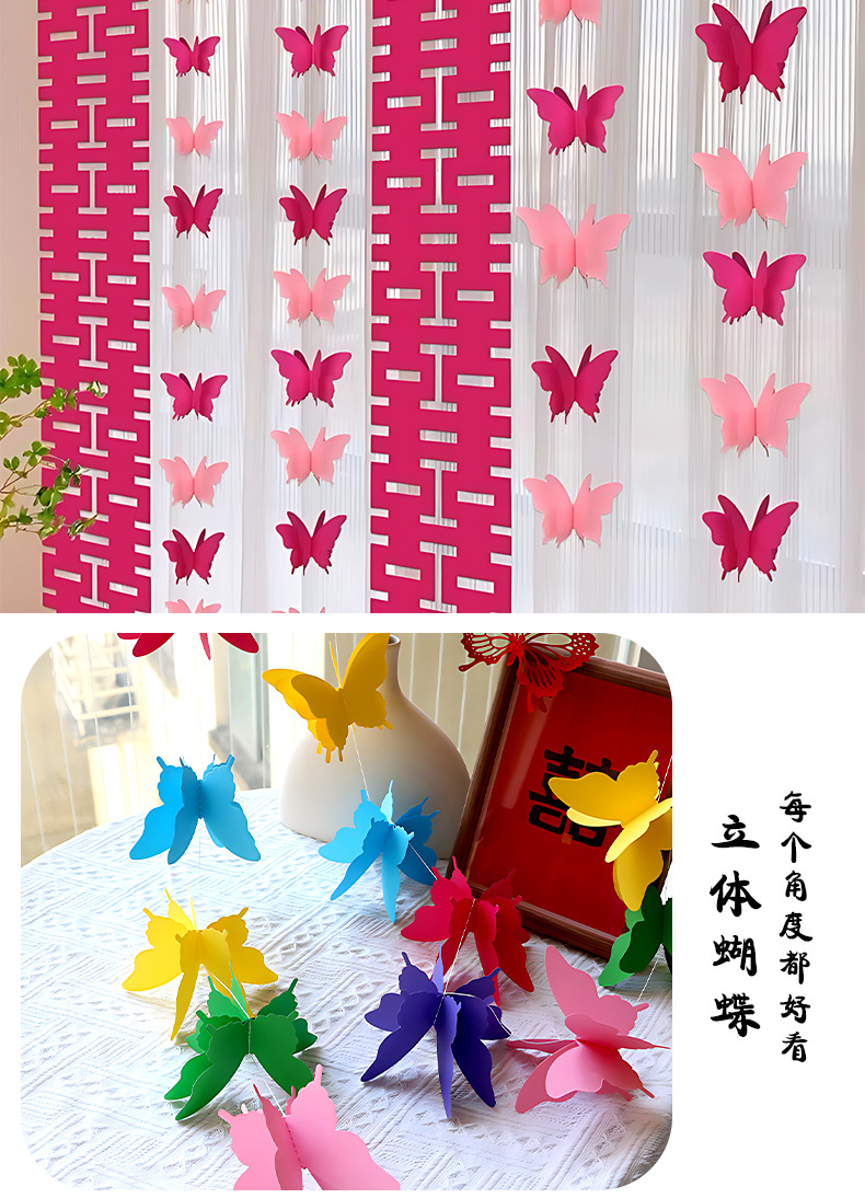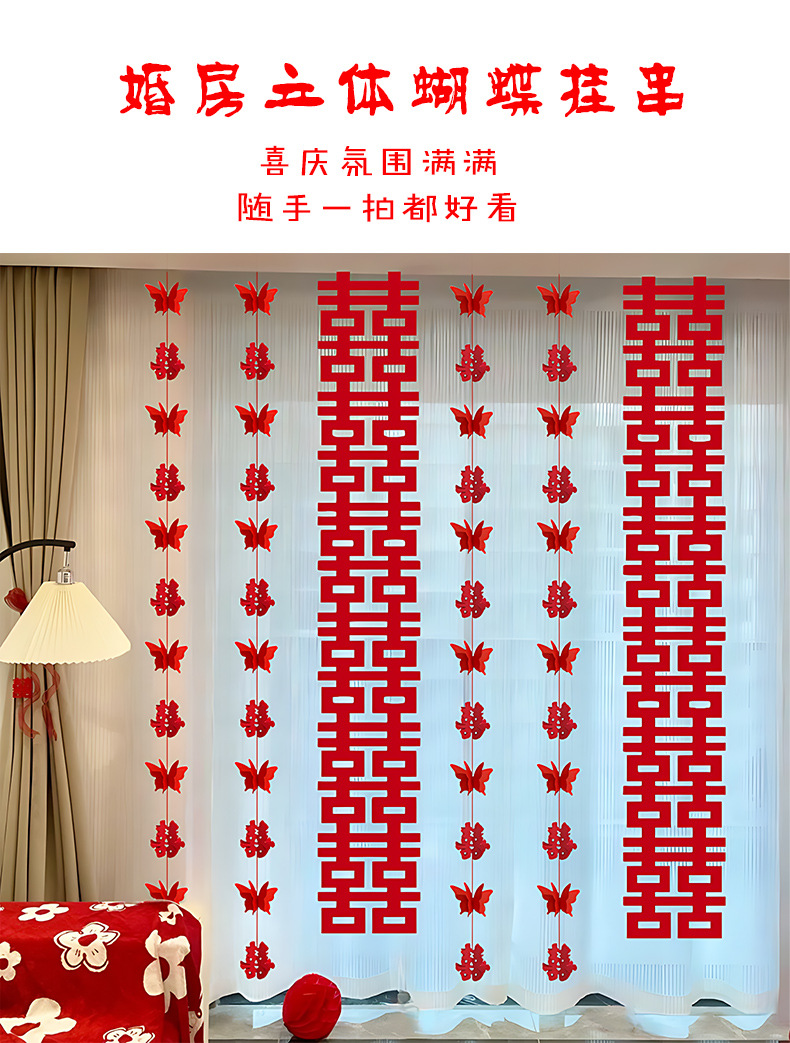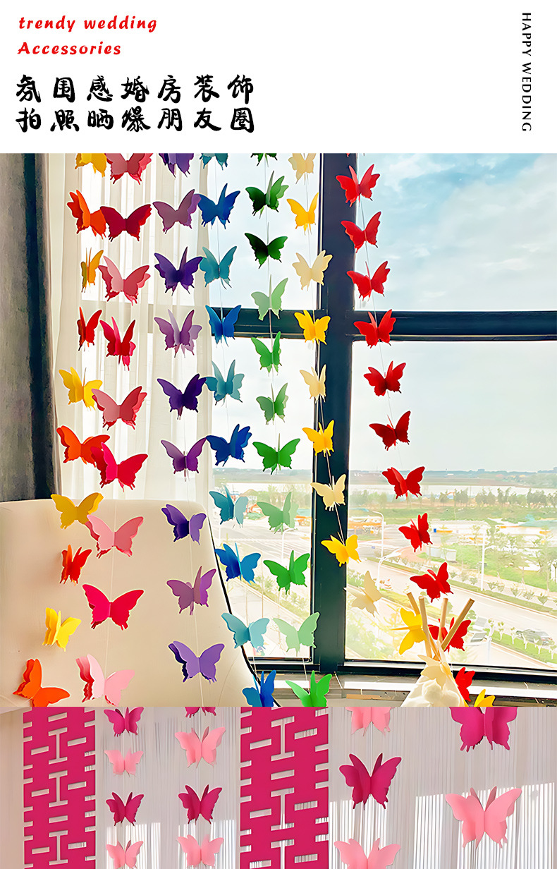3 차원 나비 끈 해피 캐릭터 웨딩 룸 장식 약혼 장면 새 집 거실 커튼 베이 창 배열 웨딩 용품