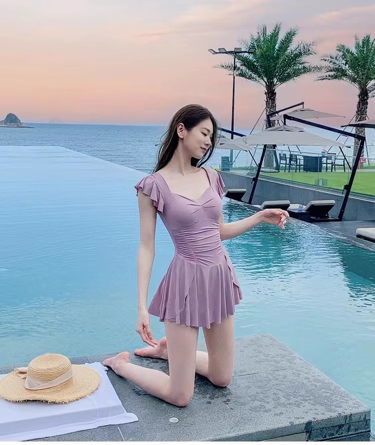 여성용 수영복 새로운 스타일 원피스 심플 섹시 슬림핏 배 커버 슬리밍 드레스 보수적인 휴가 온천 수영복스토어 가기