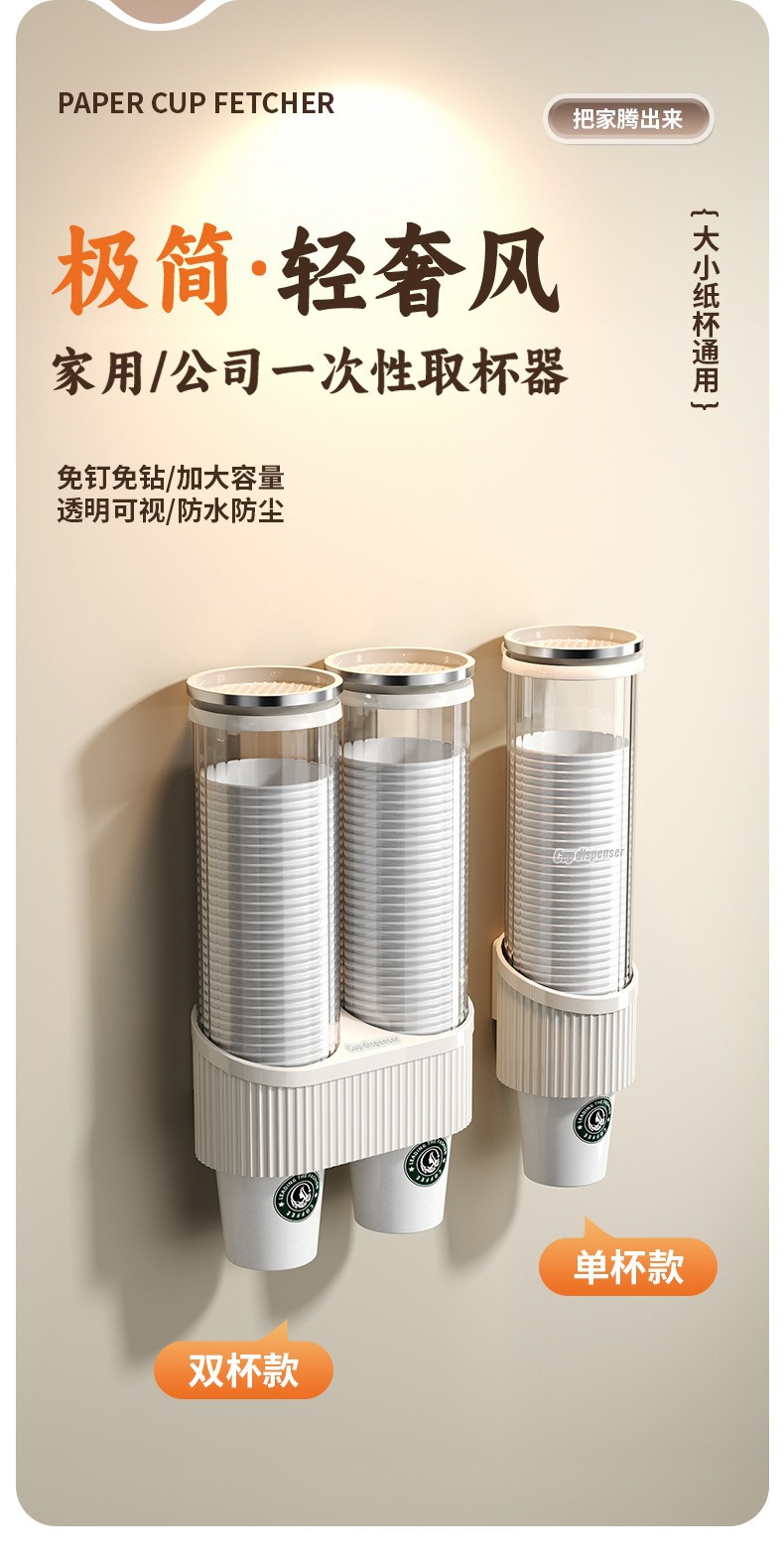 일회용 컵 디스펜서 벽걸이형 물 디스펜서 옆에 종이컵 홀더 물컵 보관 선반스토어 가기