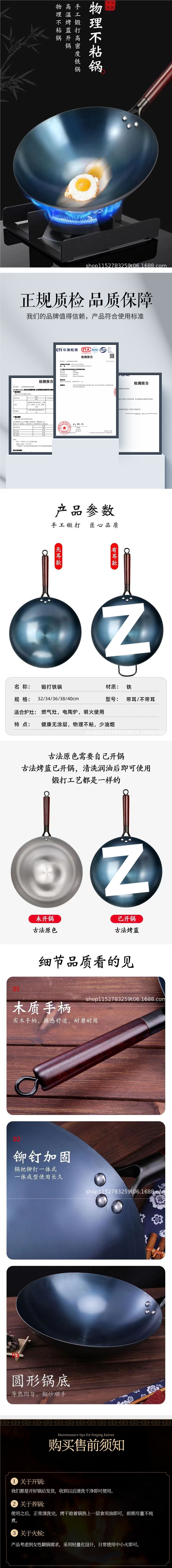전통적인 구식 가정용 워크 라운드-바닥 아이언 팬 스틱 워크 오픈 워크 무코팅 워크 무료 도매스토어 가기