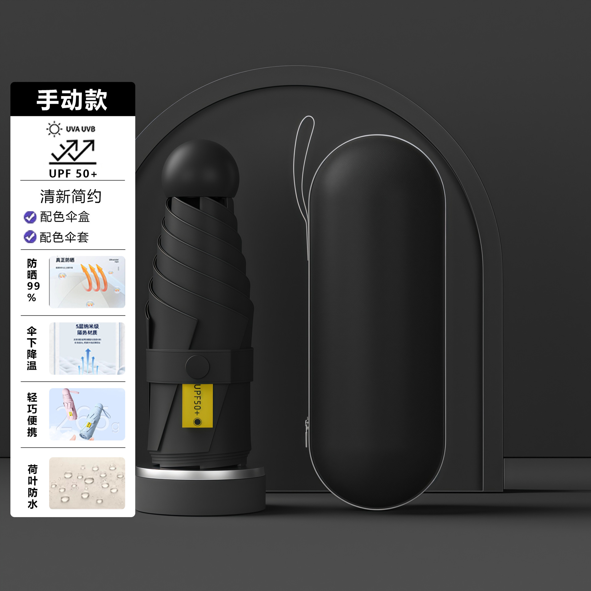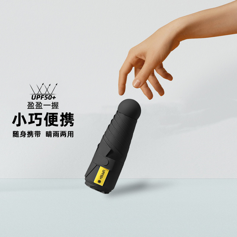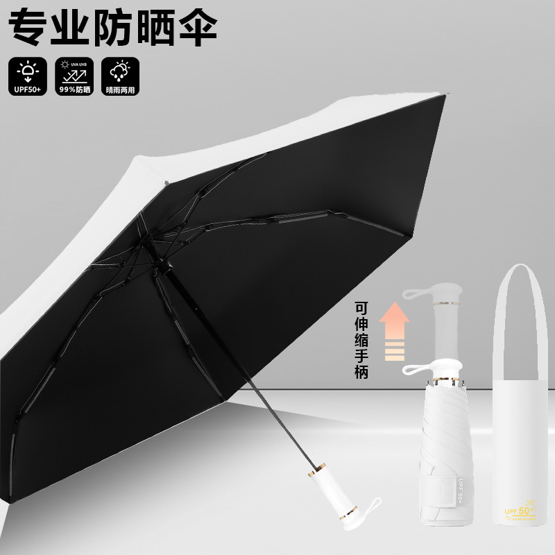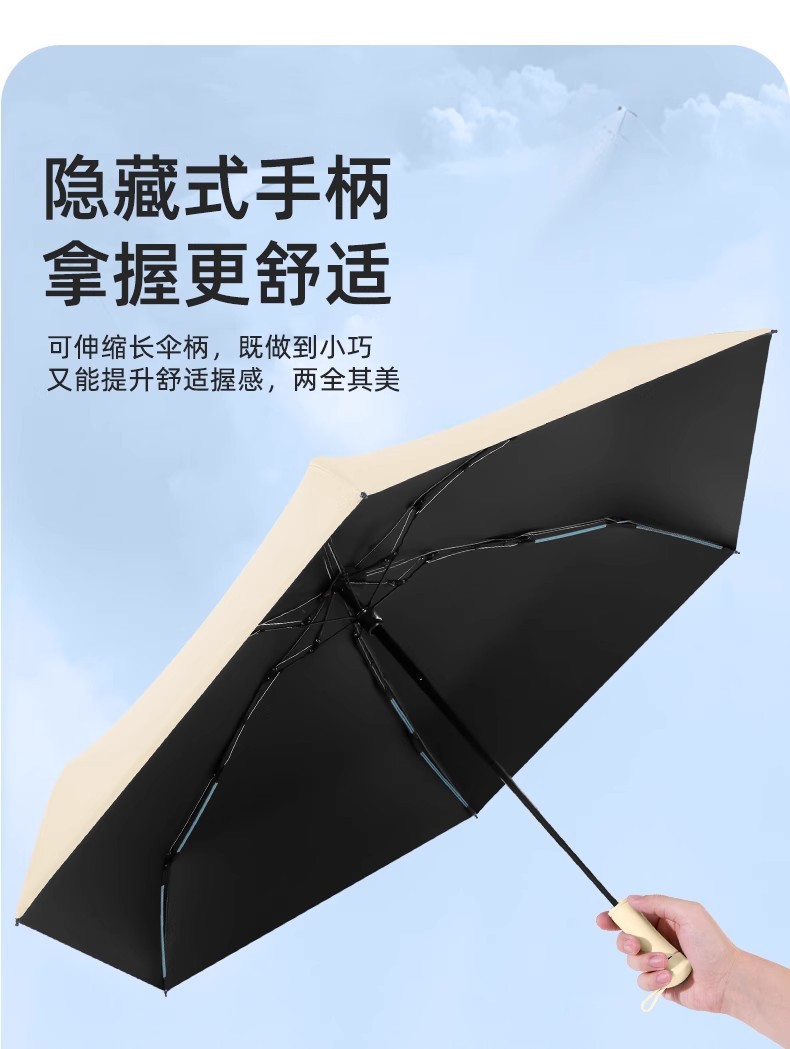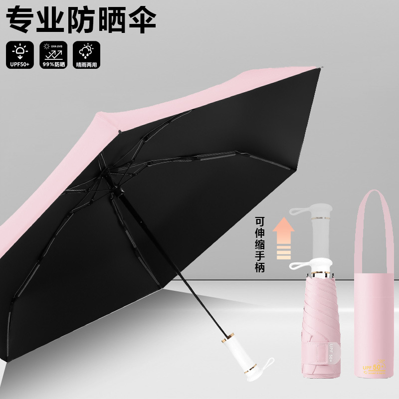 두꺼운 검은 접착제 6-뼈 다섯 접는 우산 여성의 휴대용 포켓 선 스크린 우산 UV 보호 햇빛 미니 2스토어 가기
