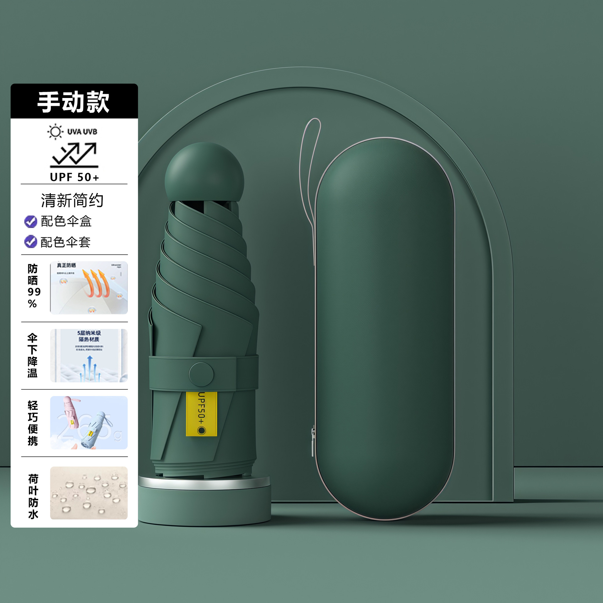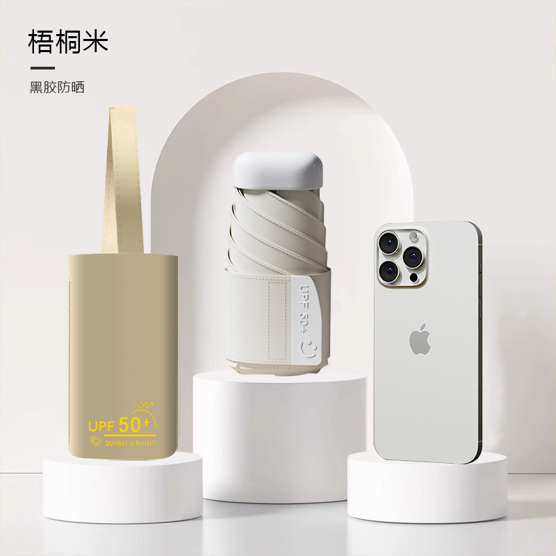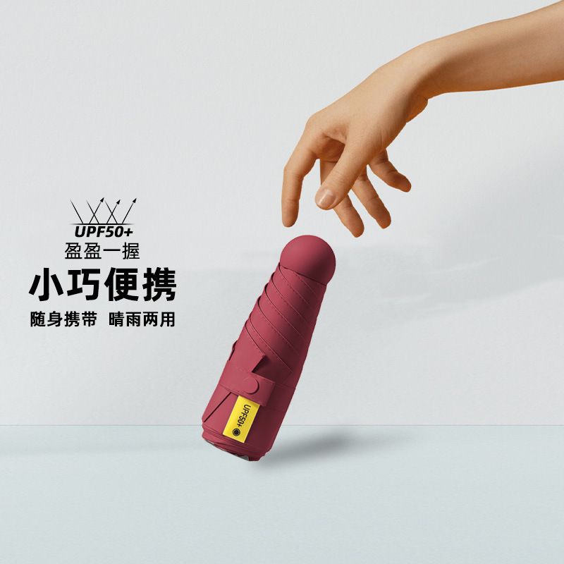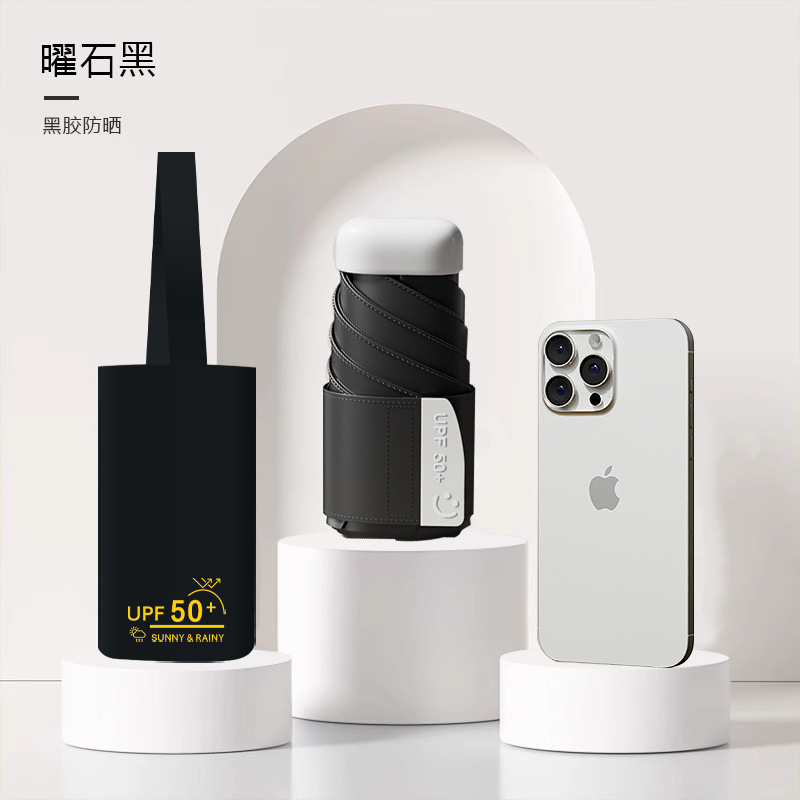 두꺼운 검은 접착제 6-뼈 다섯 접는 우산 여성의 휴대용 포켓 선 스크린 우산 UV 보호 햇빛 미니 2스토어 가기