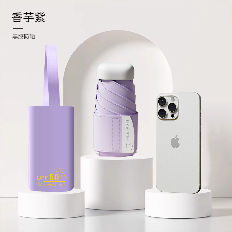 두꺼운 검은 접착제 6-뼈 다섯 접는 우산 여성의 휴대용 포켓 선 스크린 우산 UV 보호 햇빛 미니 2