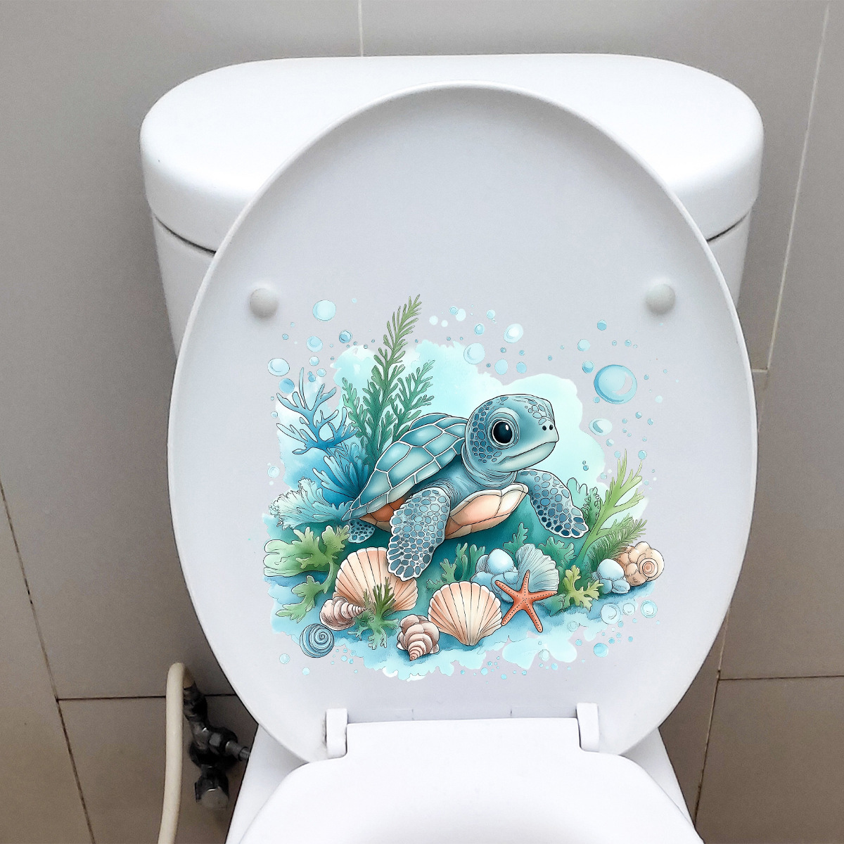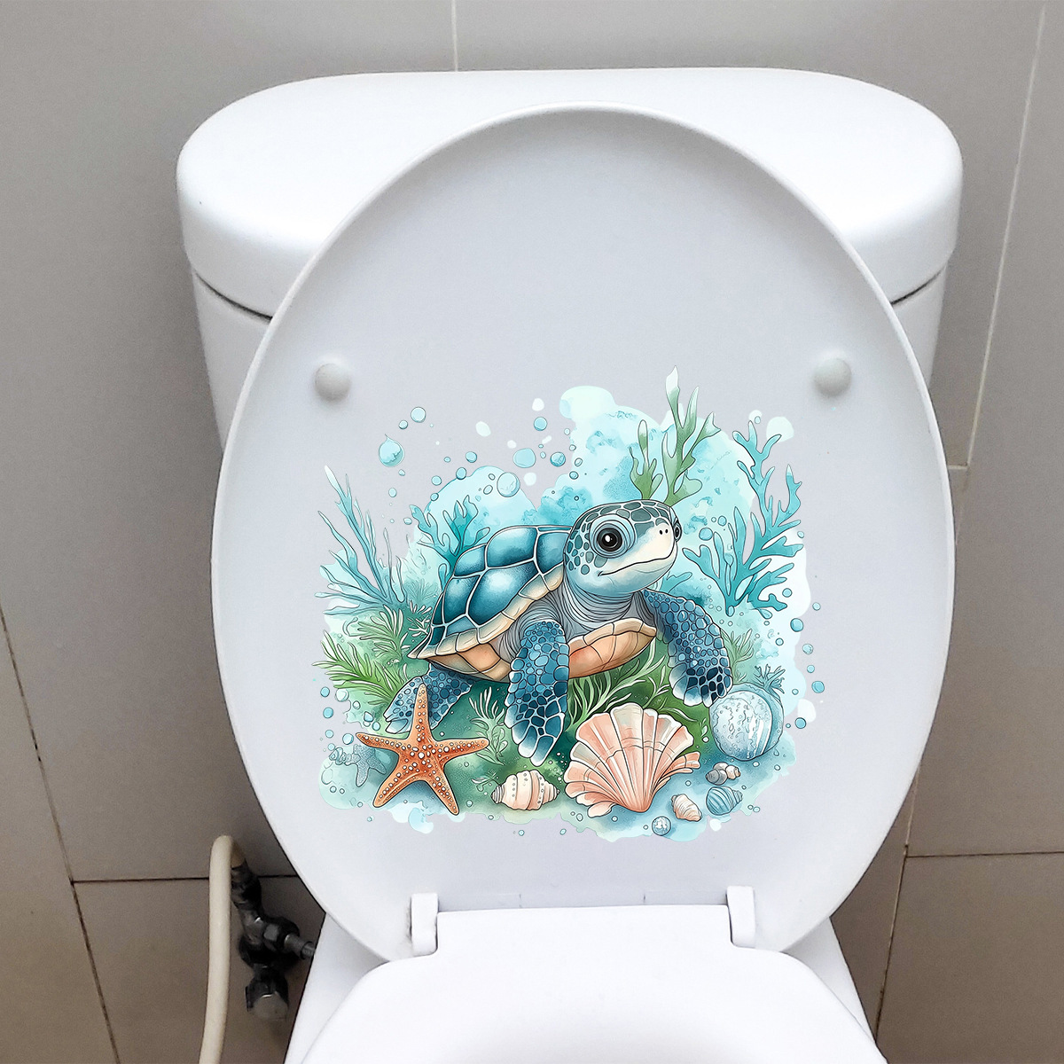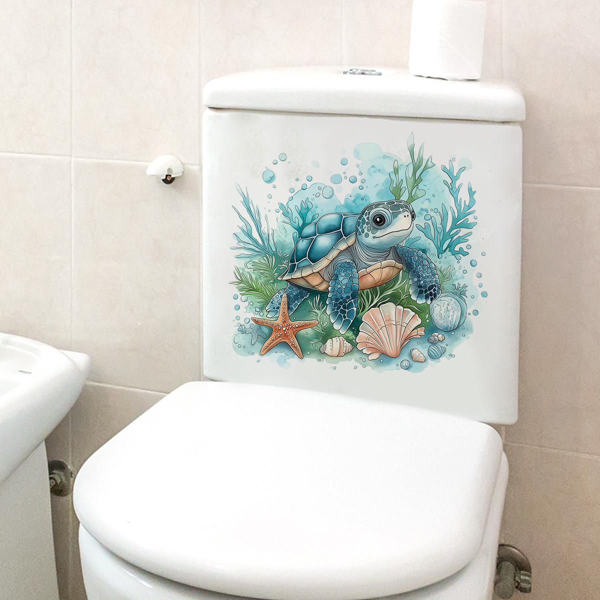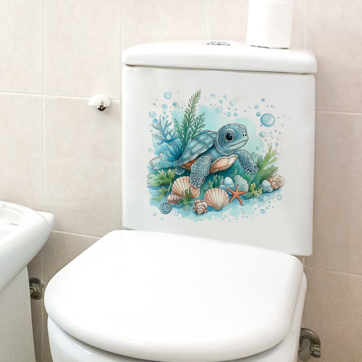 국경 간 새로운 해양 세계 거북이 물 쉘 화장실 스티커 욕실 화장실 홈 장식 벽 스티커스토어 가기