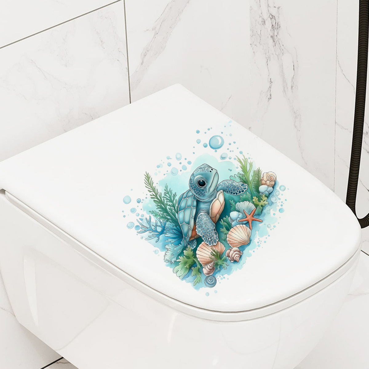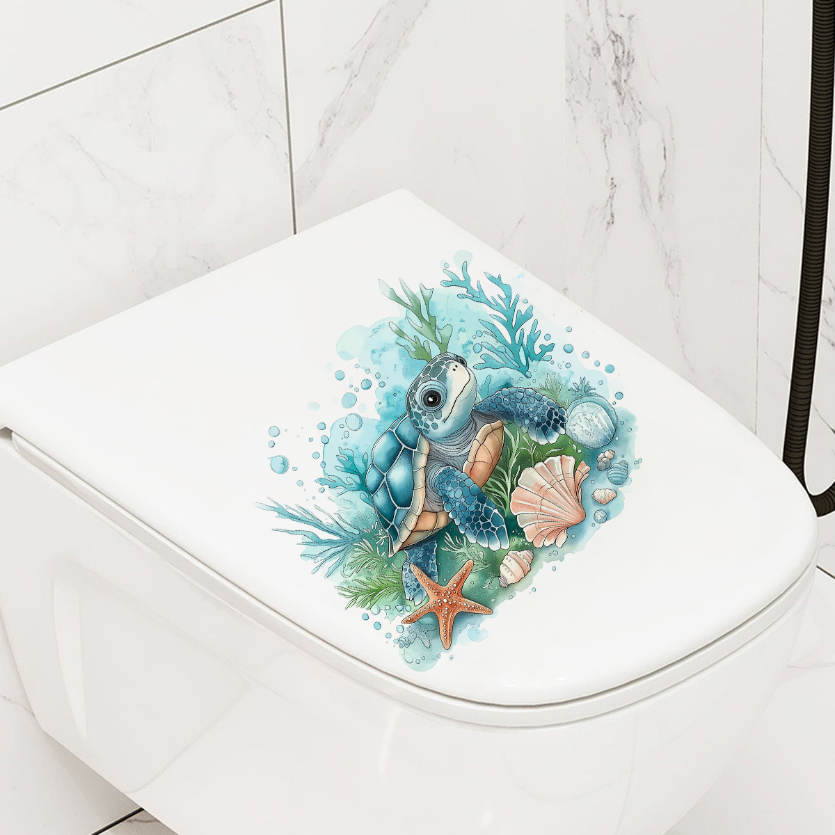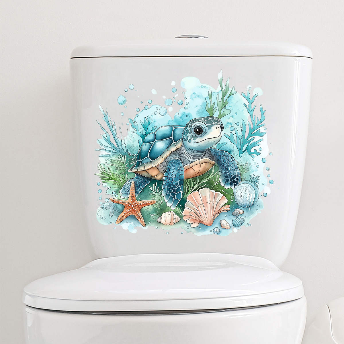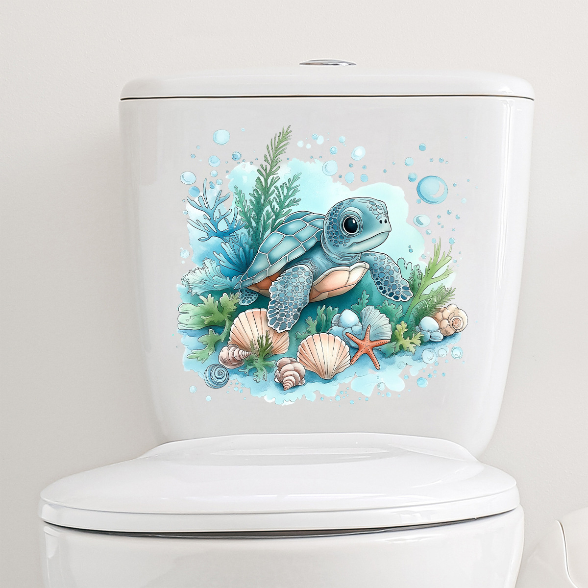 국경 간 새로운 해양 세계 거북이 물 쉘 화장실 스티커 욕실 화장실 홈 장식 벽 스티커스토어 가기