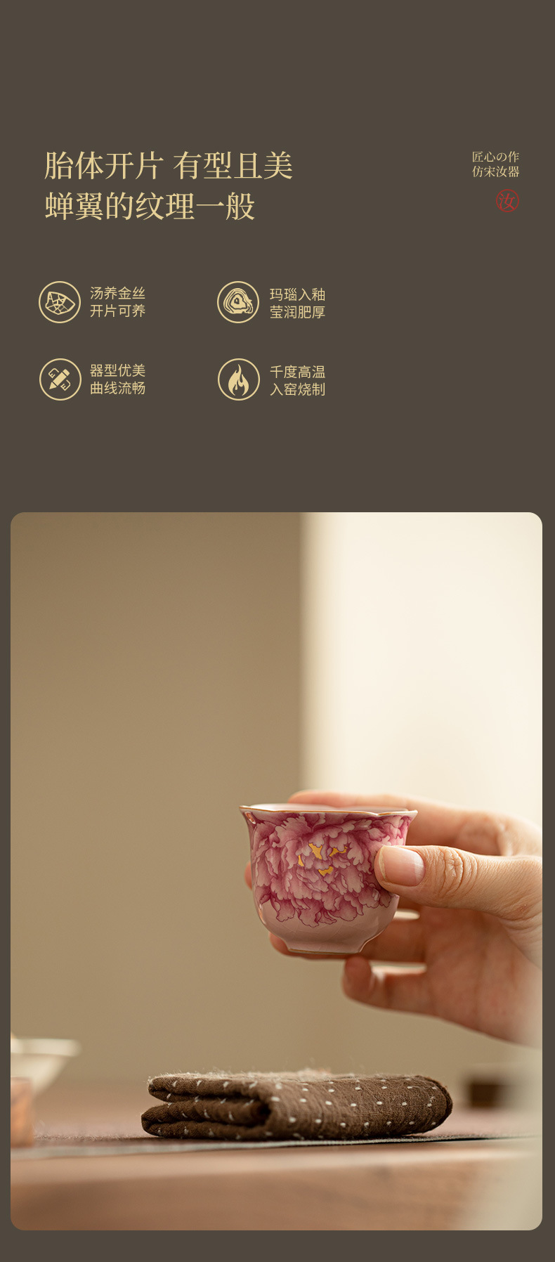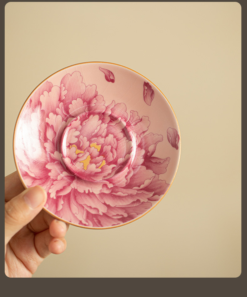 경덕진 핑루 모란 꽃잎 뚜껑 그릇 찻잔 세트 세라믹 차 세트 Sancai 뚜껑 그릇 찻잔 차 트레이 세트스토어 가기