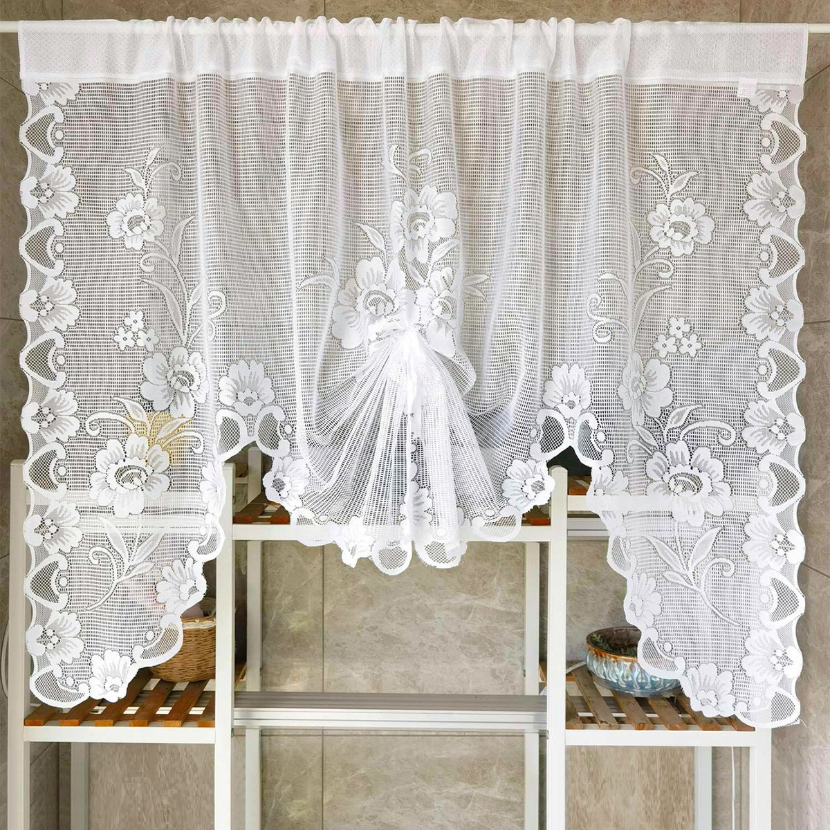 나비형 슬라이딩 커튼, 편직 화이트 레이스 커튼, 쉬폰 커튼, 창문, 주방 칸막이, 문 커튼, TEMU 배송스토어 가기