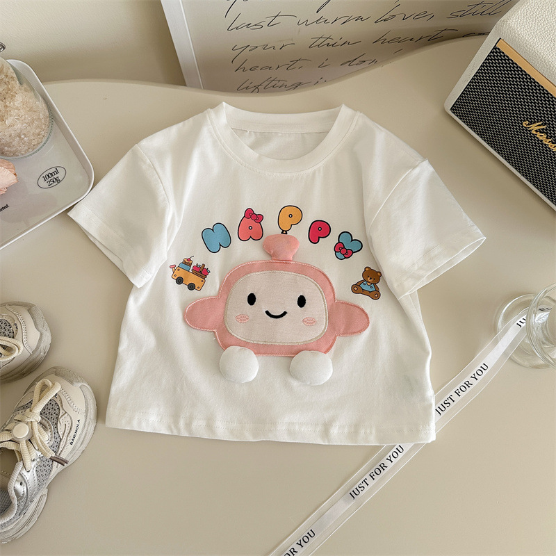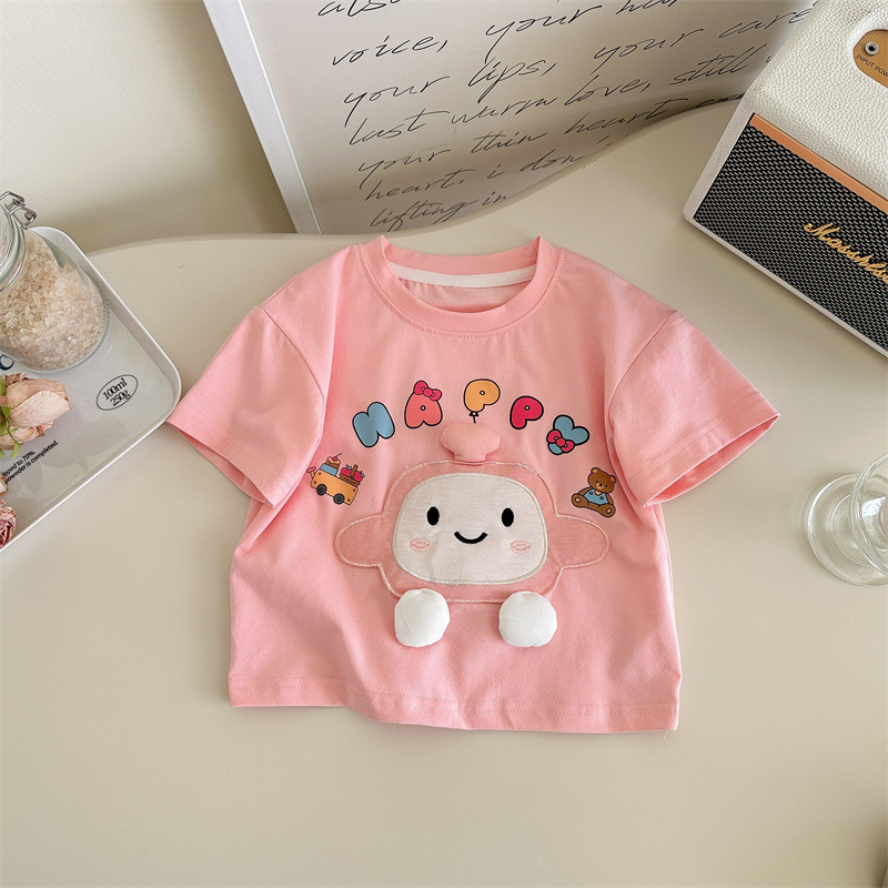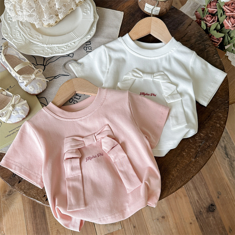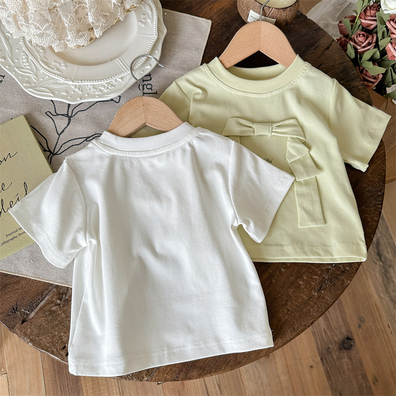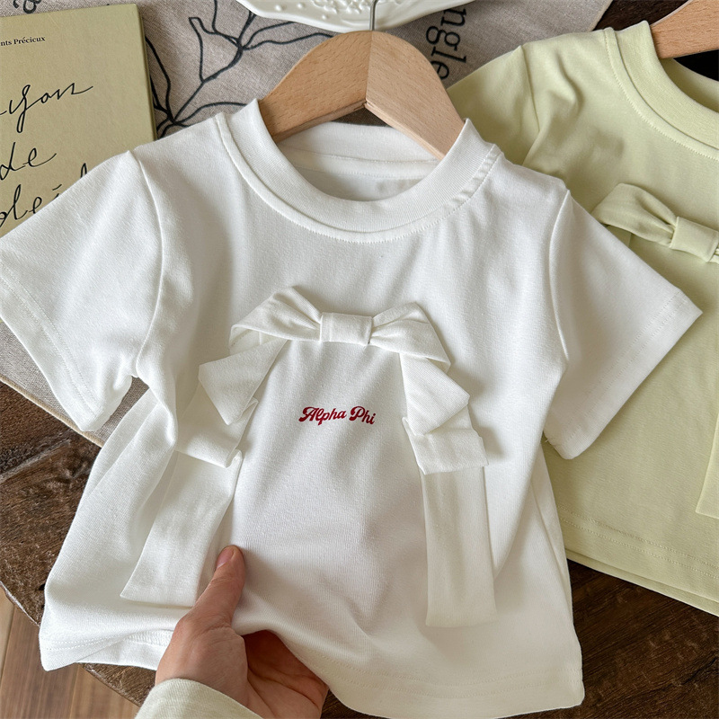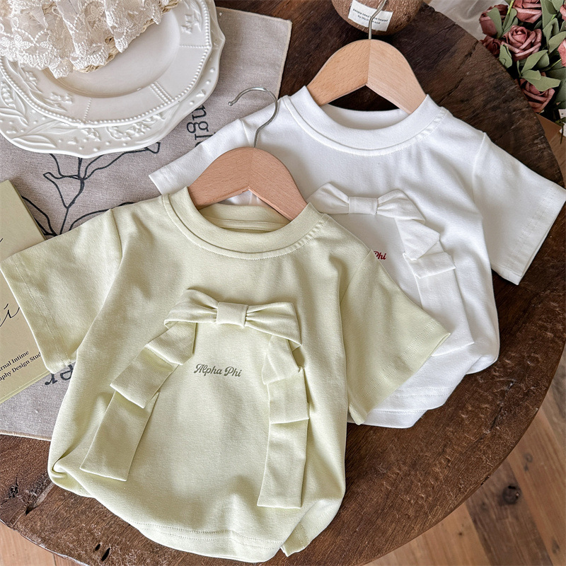 라임 소녀의 반팔 여름 새 스타일 아기 소녀 티셔츠 여름 어린이 여름 착용 소녀의 여름 착용 서양식 아동복
