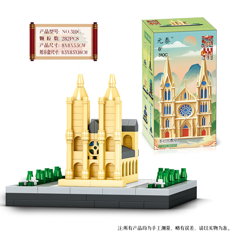 Yuantai 건물 블록 미세 입자 어린이 교육 광저우 랜드 마크 성심 성당 건물 호환 레고 소년 장난감스토어 가기