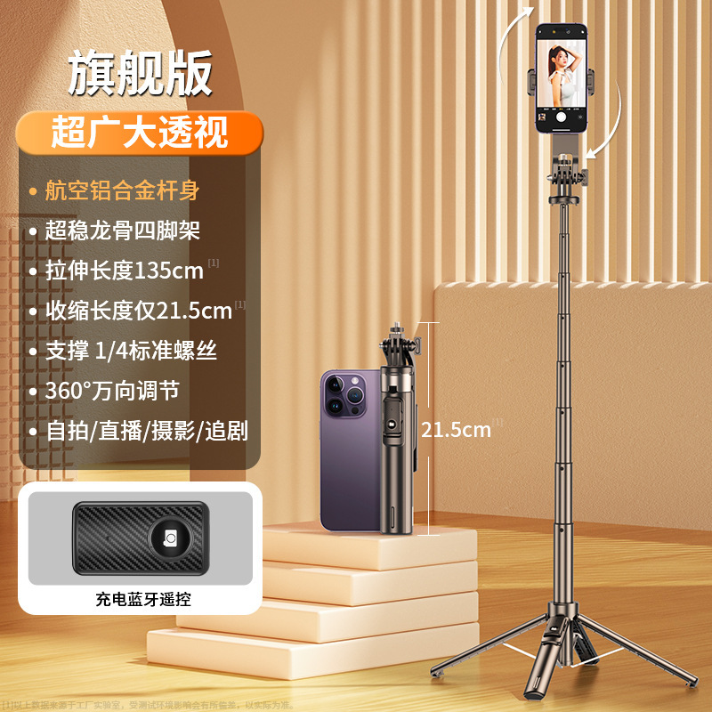 2025 새로운 알루미늄 합금 셀카 스틱 쿼드 포드 플로어 투 플로어 트레몰로 라이브 카메라 휴대 전화 도매스토어 가기