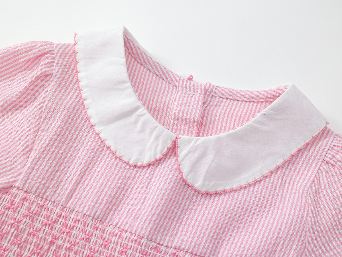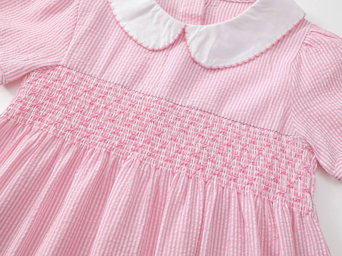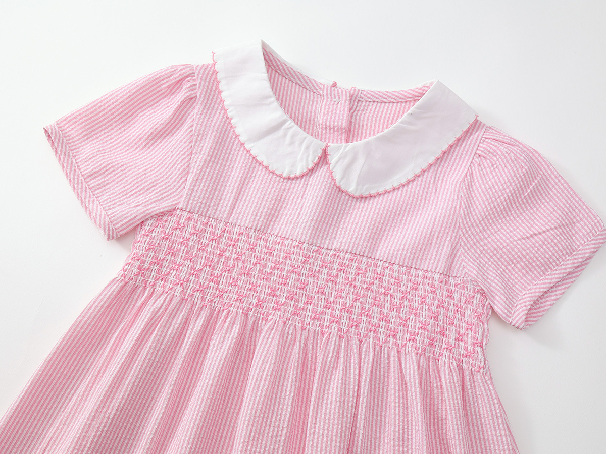 여자 유럽과 미국 스타일의 자수 원피스 2025 여름 새로운 어린이 옷깃 짧은 소매 공주 스커트 국경 도매스토어 가기