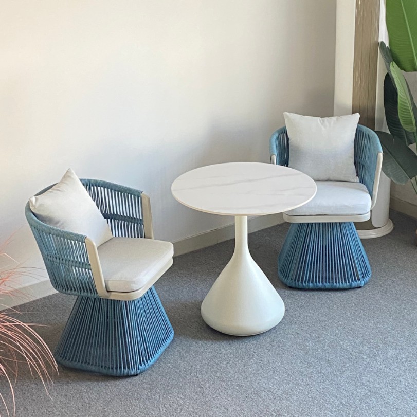북유럽 등나무 야외 테이블과 의자 빌라 안뜰 정원 회전 등나무 의자 크리 에이 티브 디자이너 로프 테이블과 의자 조합스토어 가기
