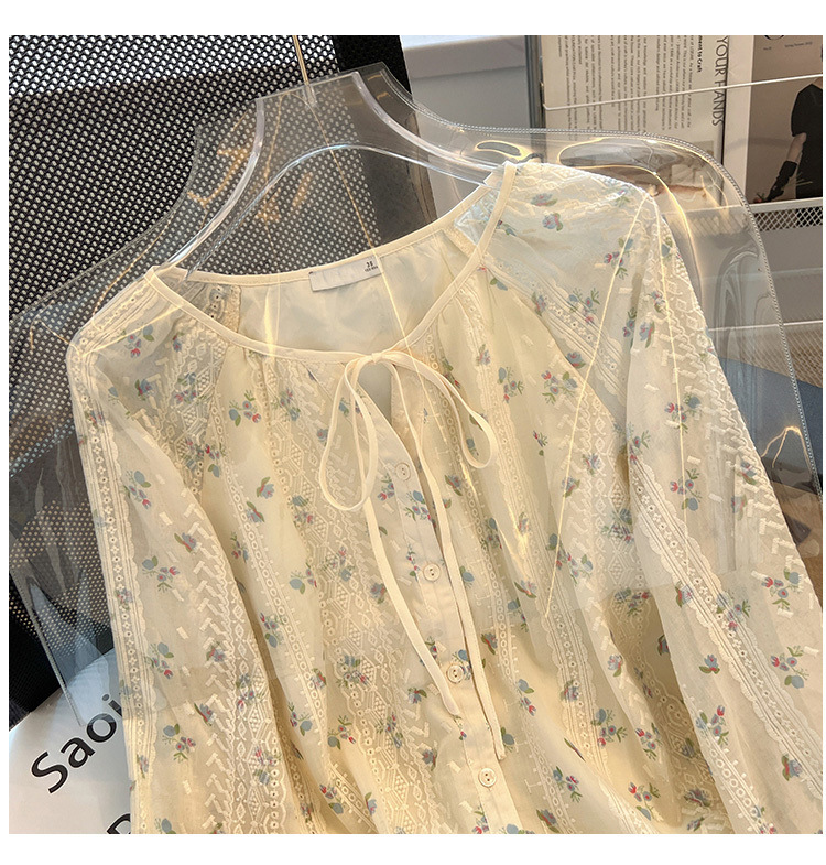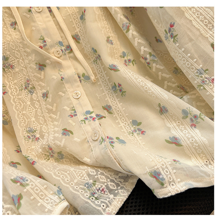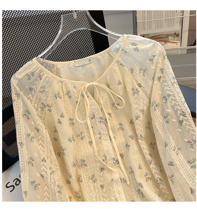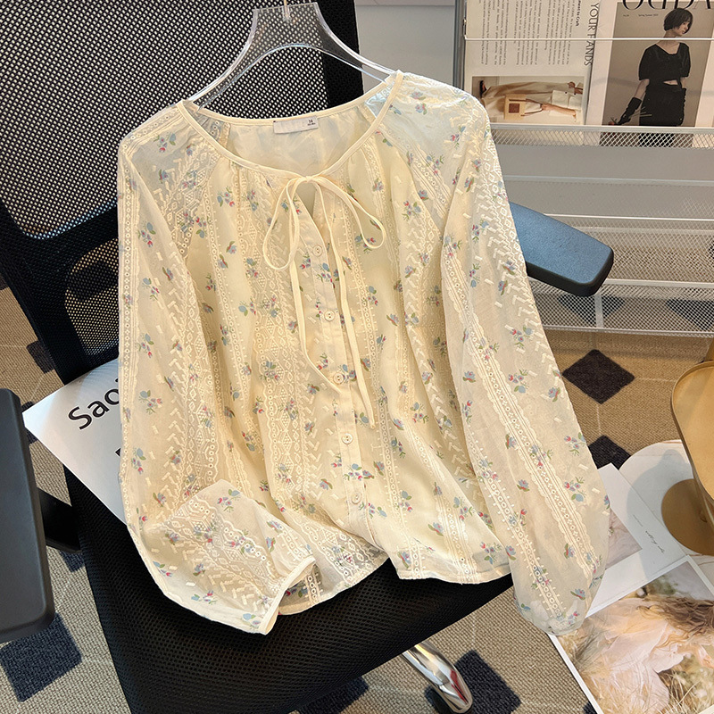 여성용 프렌치 플로럴 쉬폰 셔츠 긴팔 2025 가을 신작 루즈 슬리밍 배 커버 탑 셔츠스토어 가기