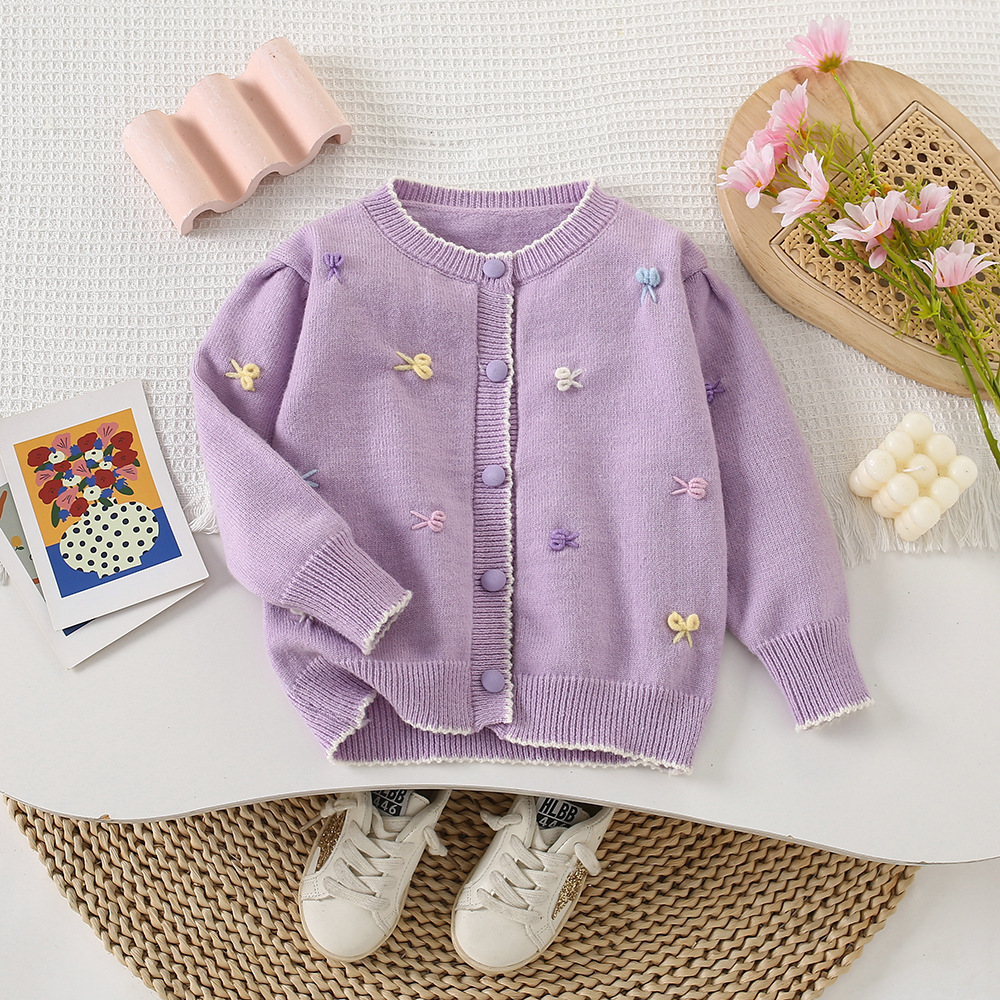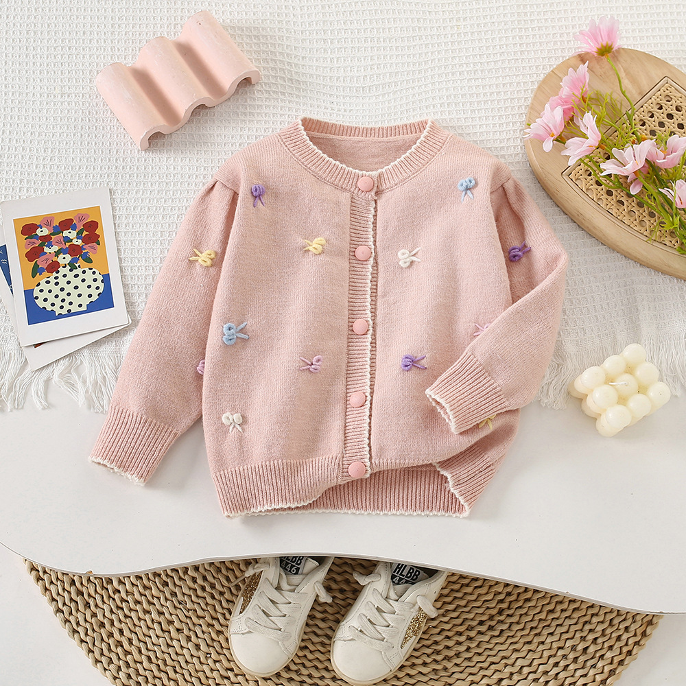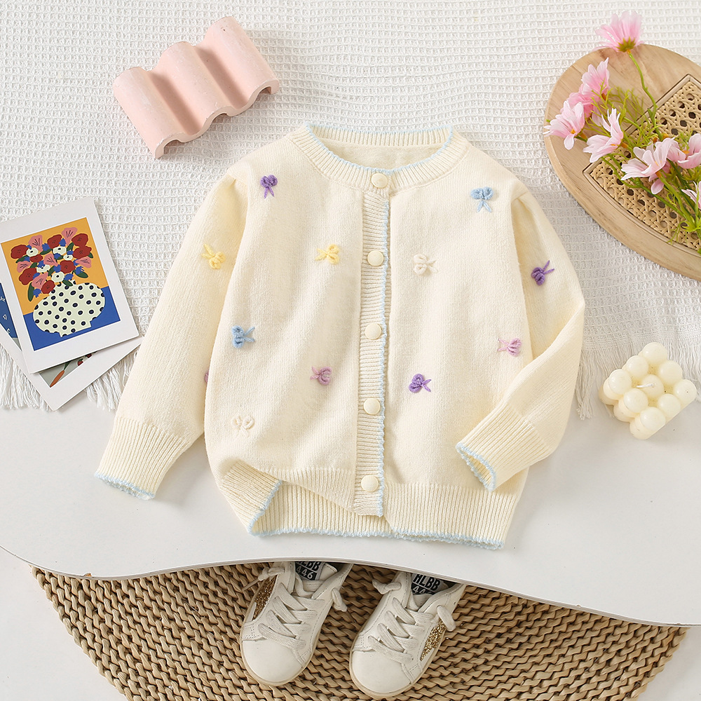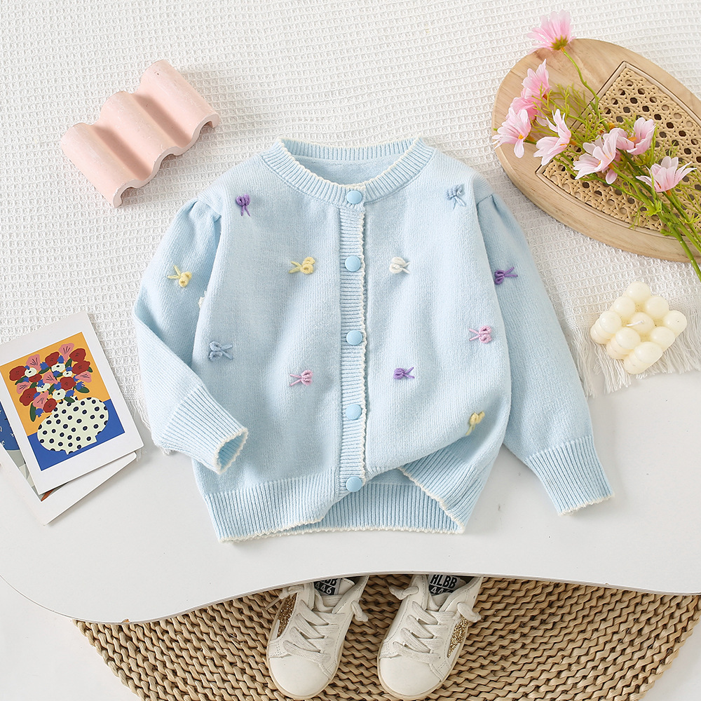 여아 스웨터 봄 가을 신상 작은 가위로 손으로 뜨개질한 니트 가디건 여아용 한국 스타일 달콤하고 세련된 상의