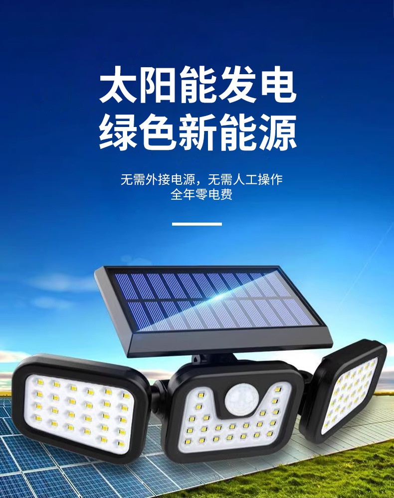태양광 조명, 3면 발광, 멀티 헤드 센서 램프, 무선 가로등, 고출력 농촌 정원등 공장 공급스토어 가기