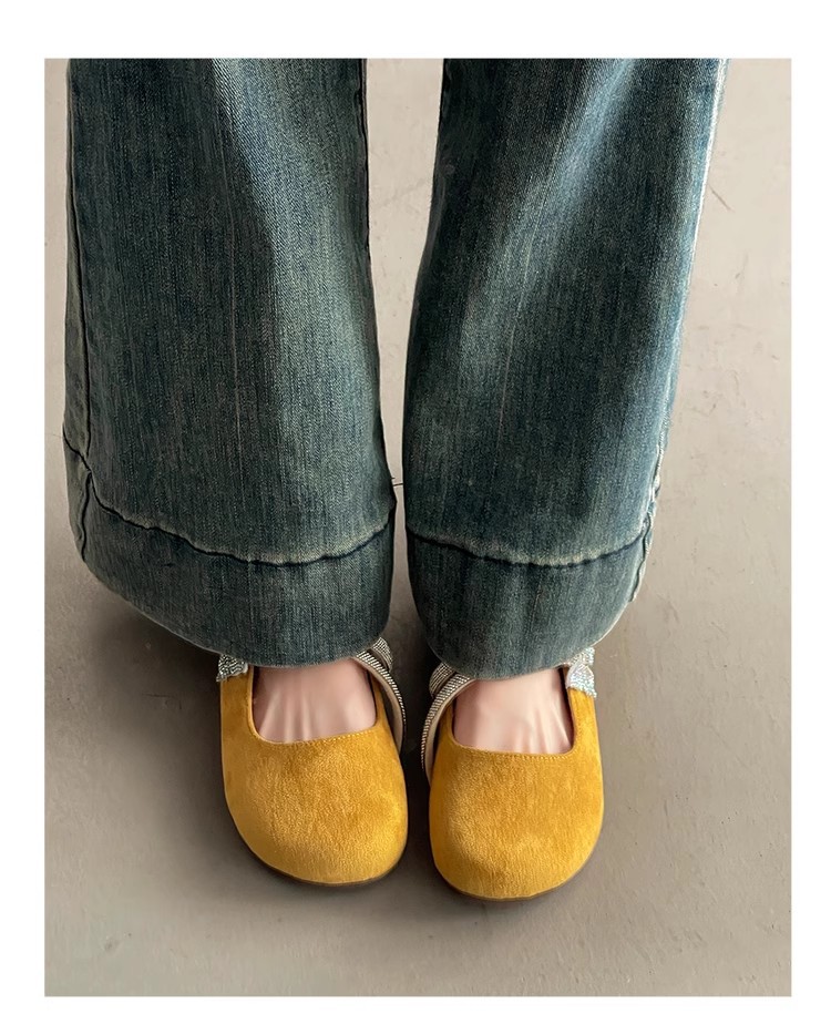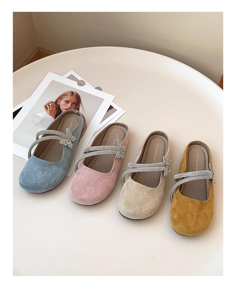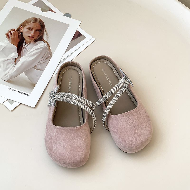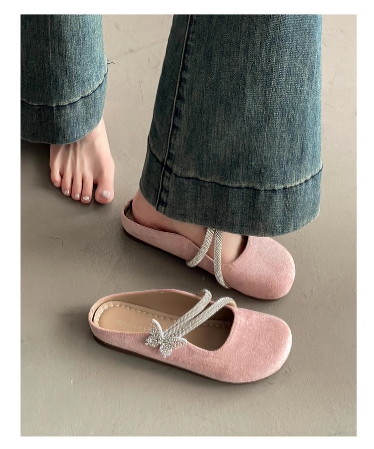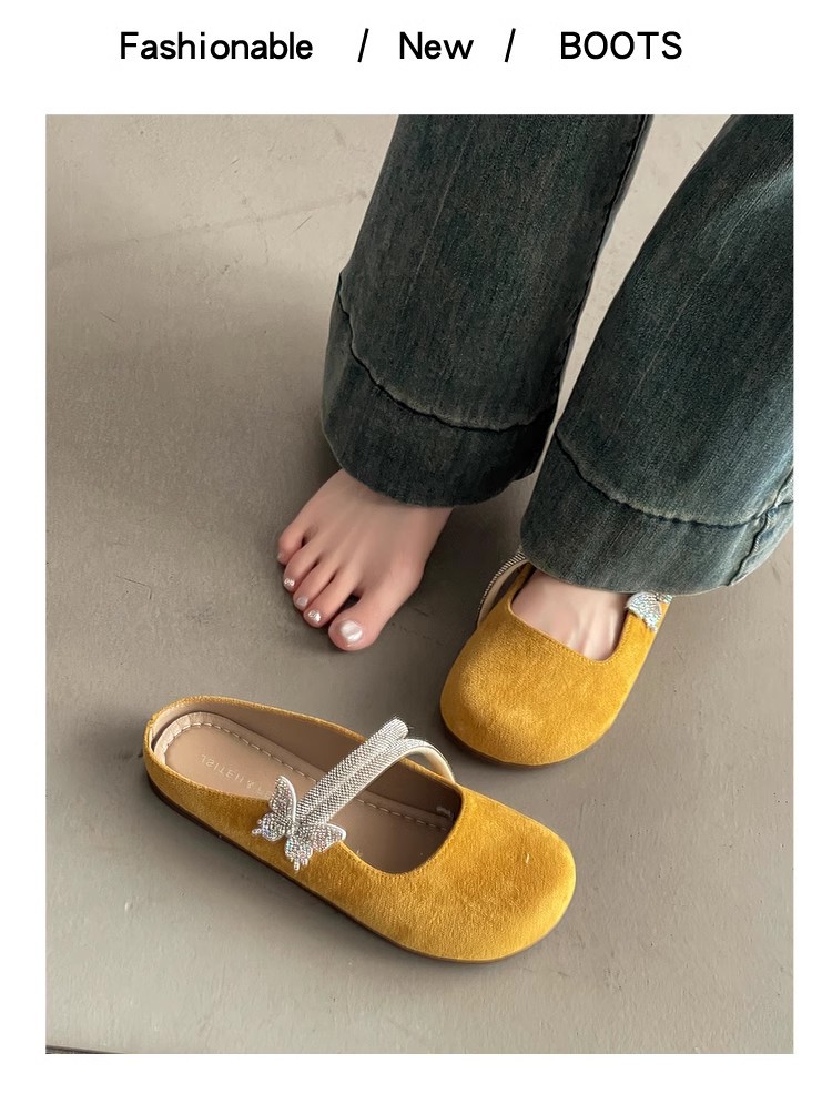 저녁 브리즈 부드러운 플랫 하단 Baotou 슬리퍼 여성 여름 아우터웨어 2025 새로운 라인스톤 라운드 헤드 메리 제인 하프 슬리퍼