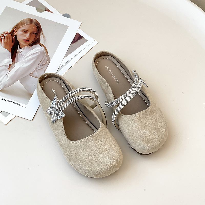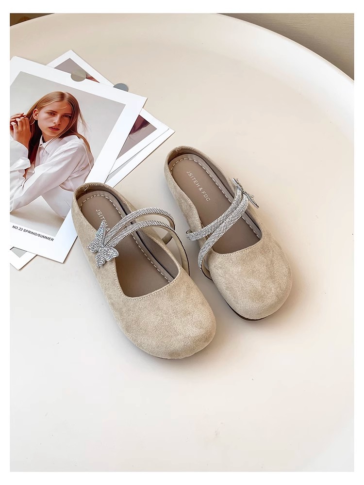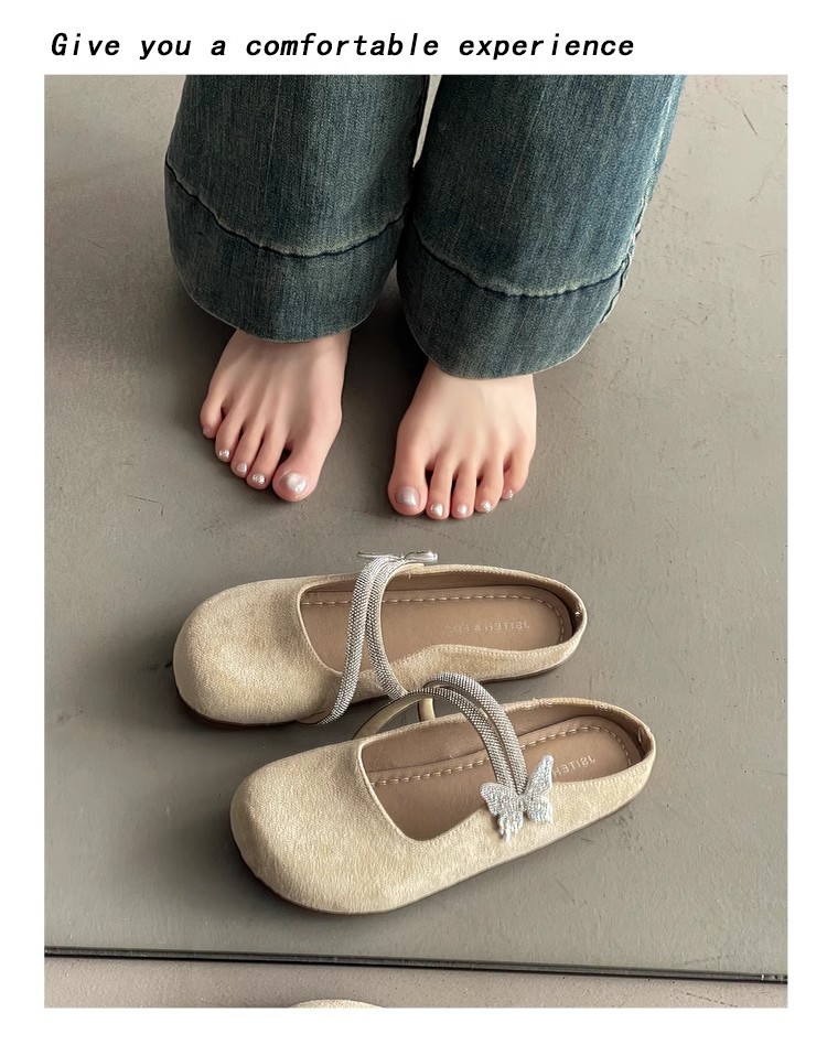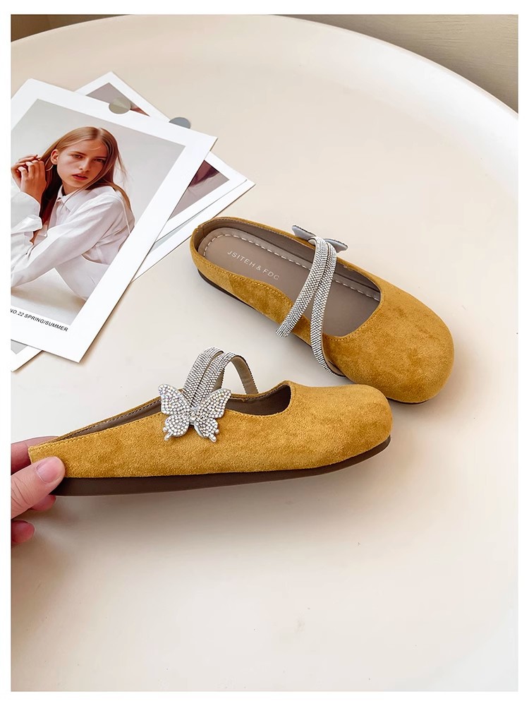 저녁 브리즈 부드러운 플랫 하단 Baotou 슬리퍼 여성 여름 아우터웨어 2025 새로운 라인스톤 라운드 헤드 메리 제인 하프 슬리퍼