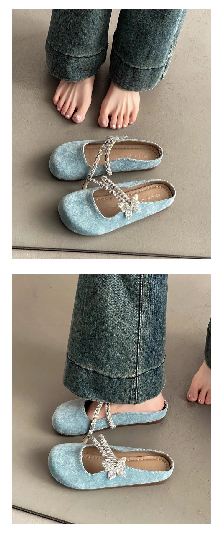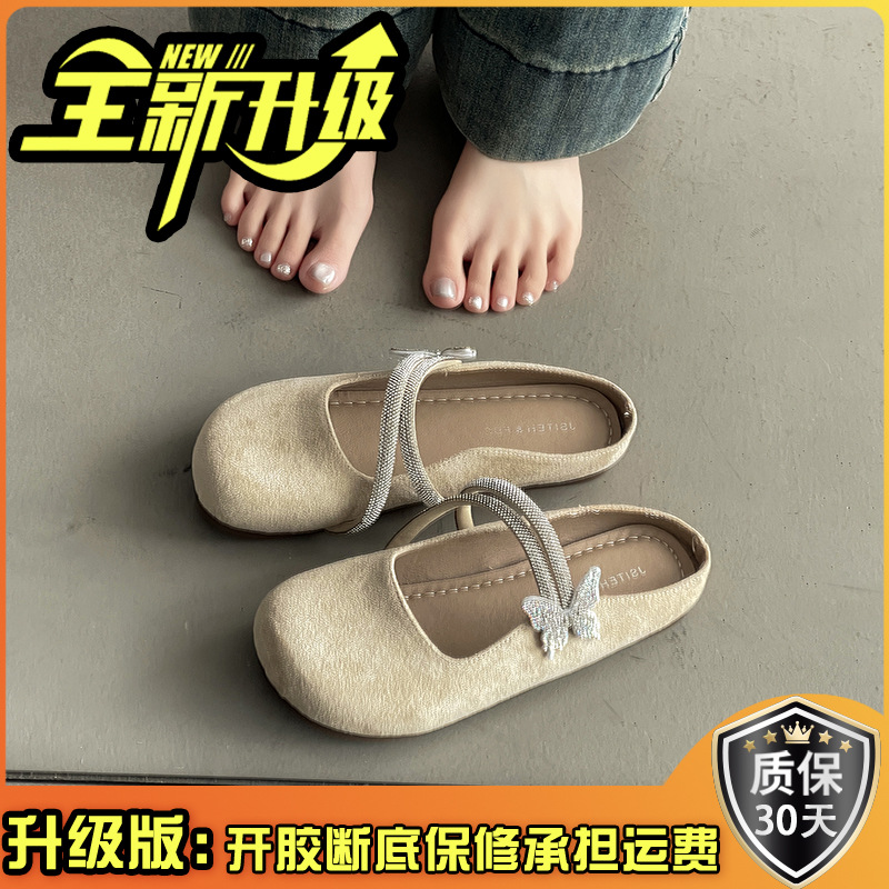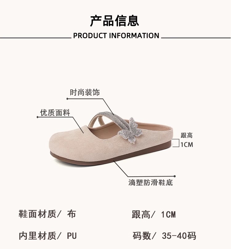 저녁 브리즈 부드러운 플랫 하단 Baotou 슬리퍼 여성 여름 아우터웨어 2025 새로운 라인스톤 라운드 헤드 메리 제인 하프 슬리퍼스토어 가기