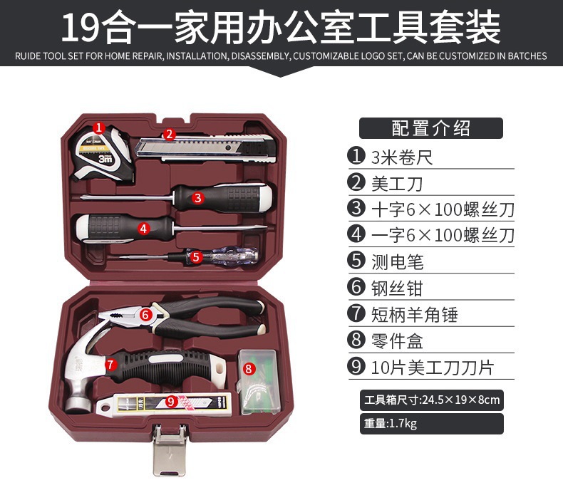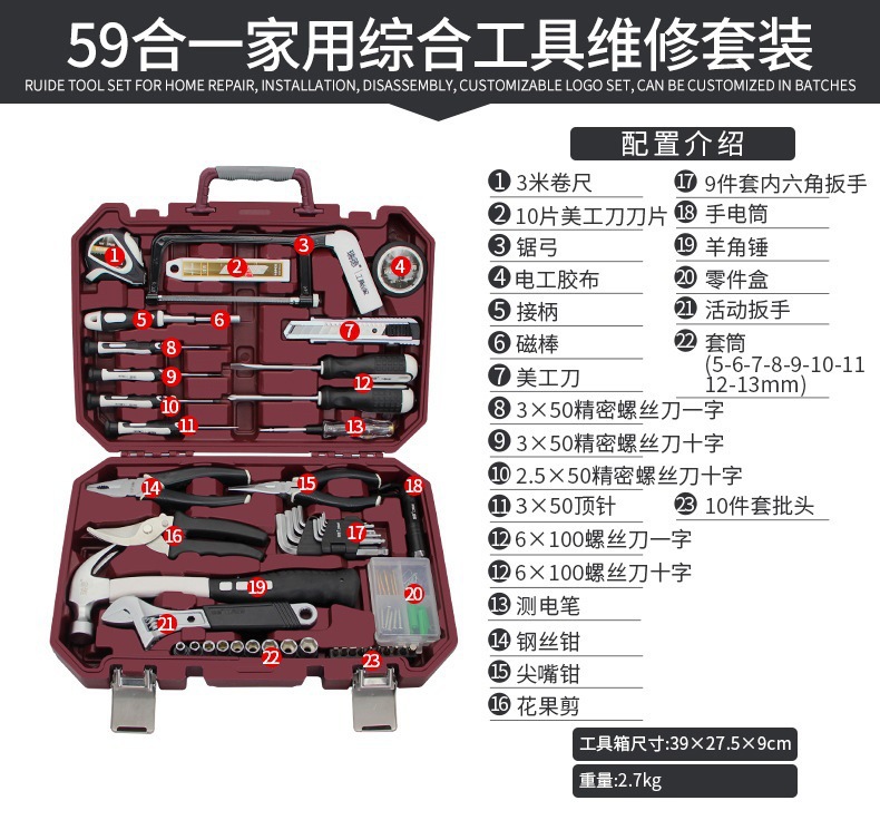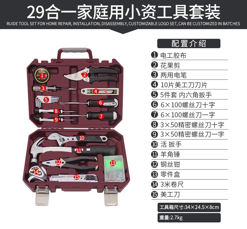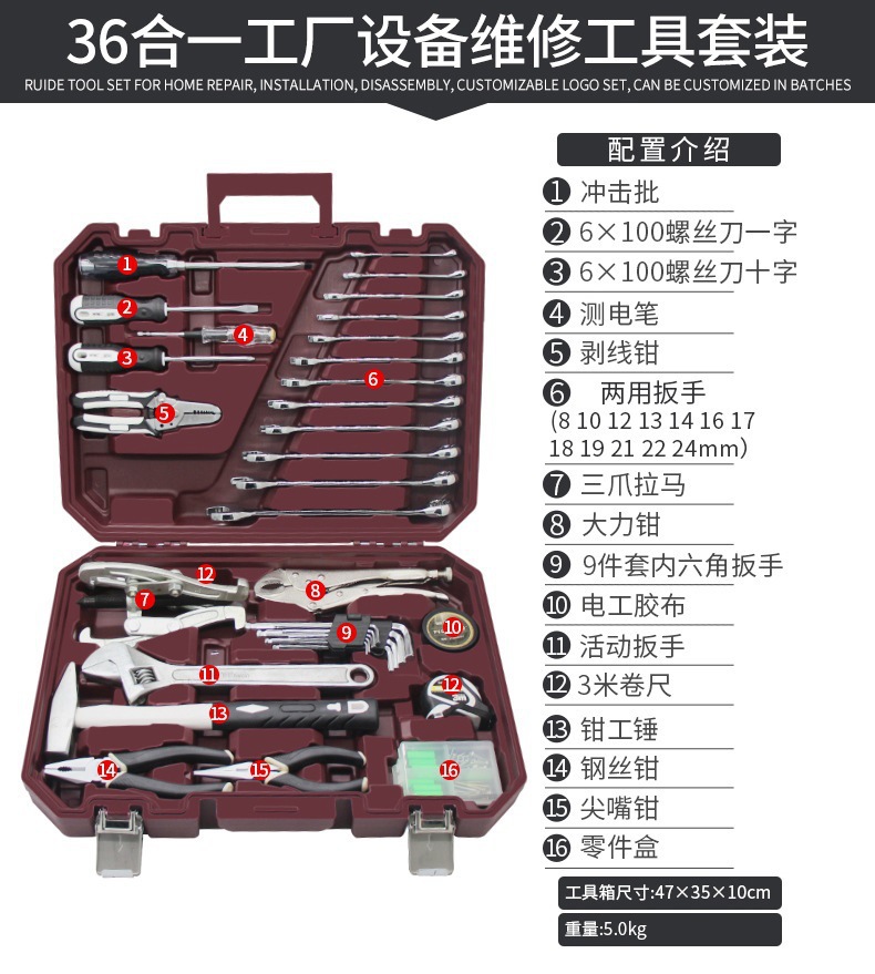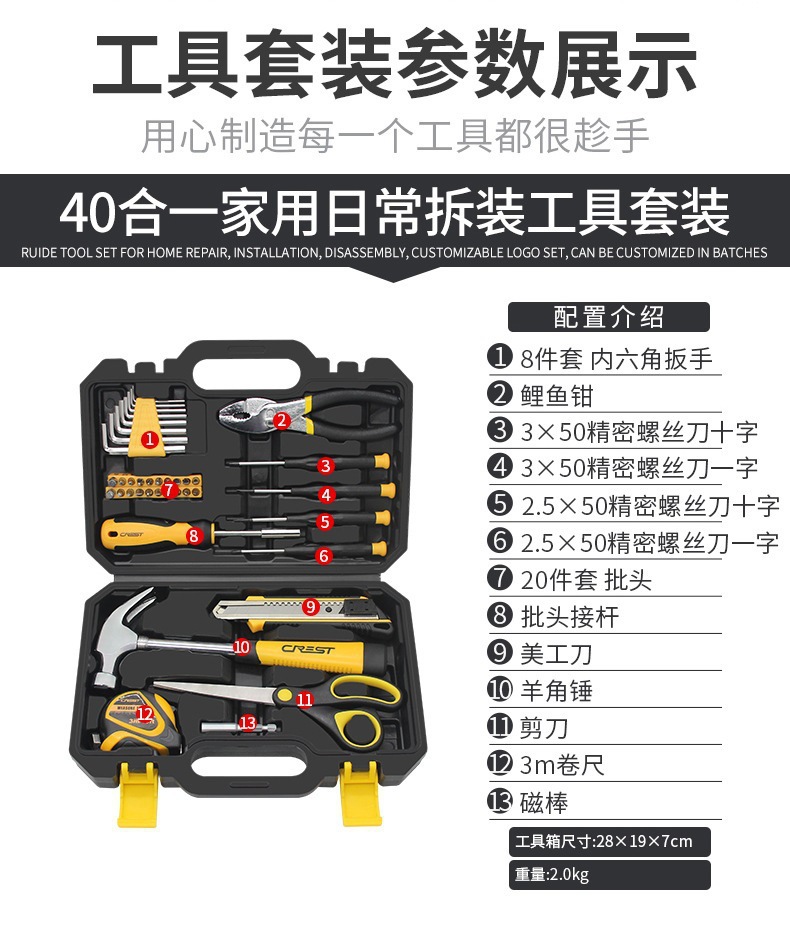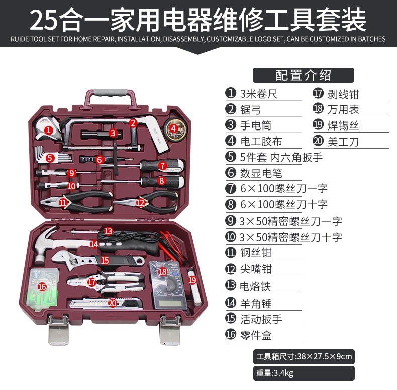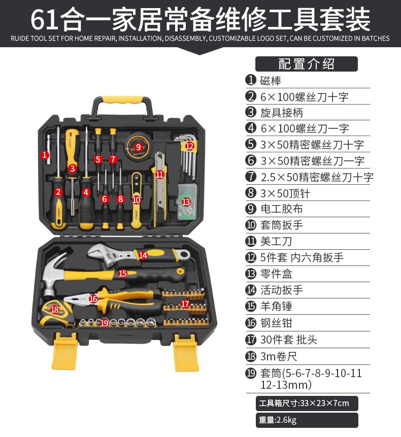 Ruide 선물 도구 세트 홈 하드웨어 수공구 조합 수리 세트 도구 상자 전체 세트