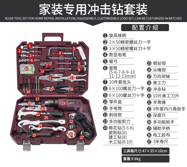 • 집 종합 유지 보수 임팩트 드릴 세트 [모델 105130]★★