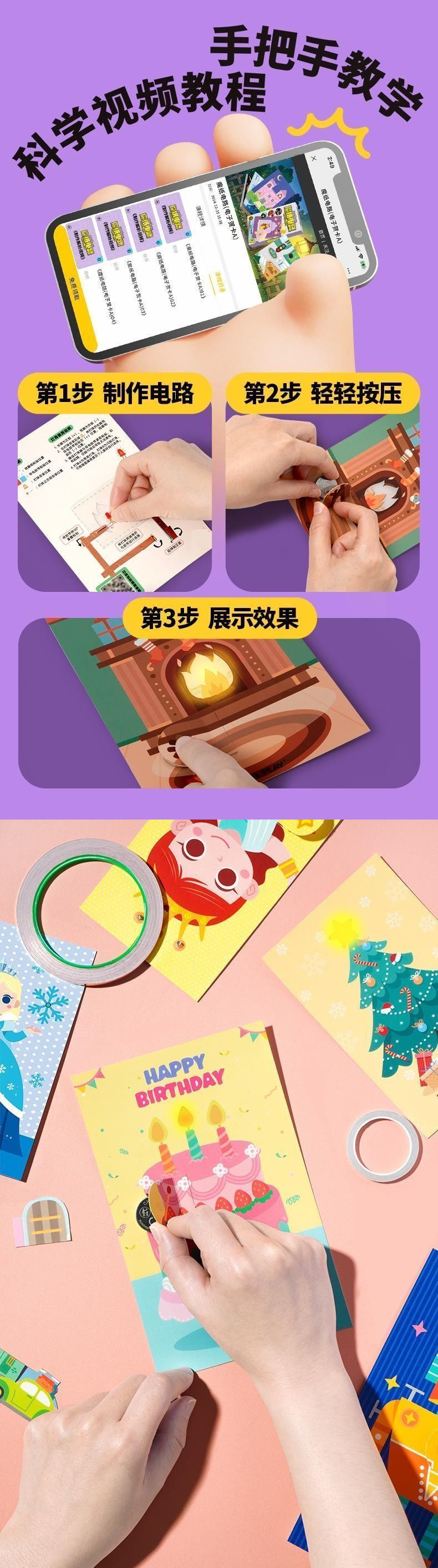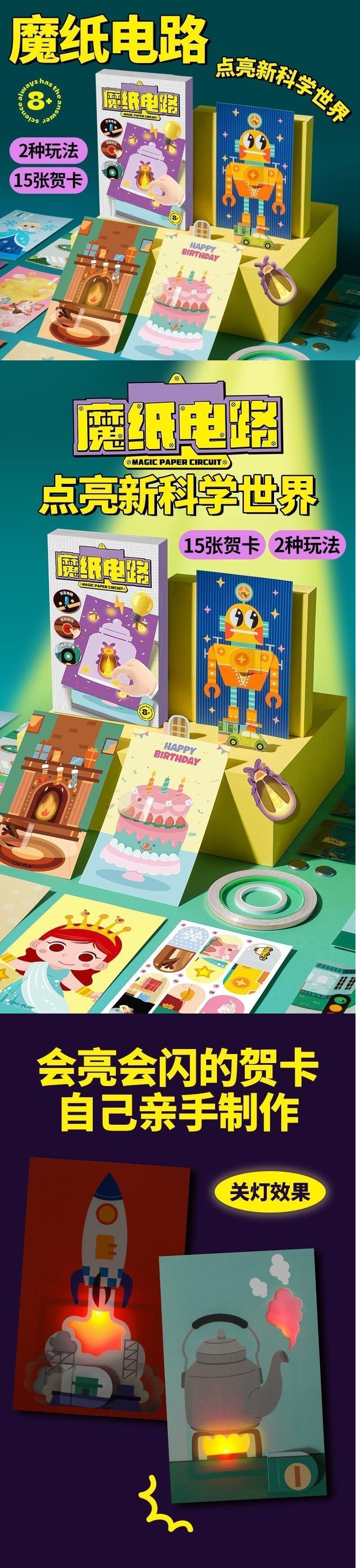 매직 종이 회로 수제 DIY 자체 제작 재료 패키지 어린이 소년 교육 과학 실험 빛나는 인사말 카드 장난감스토어 가기