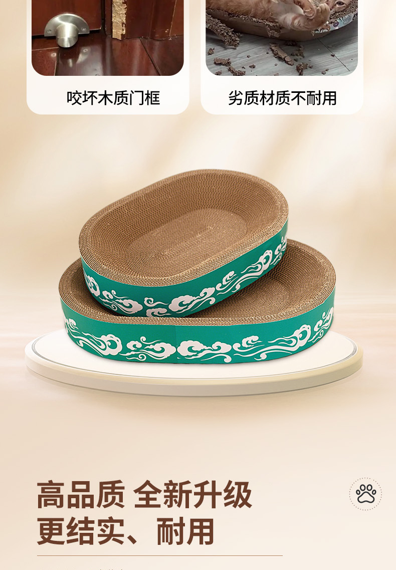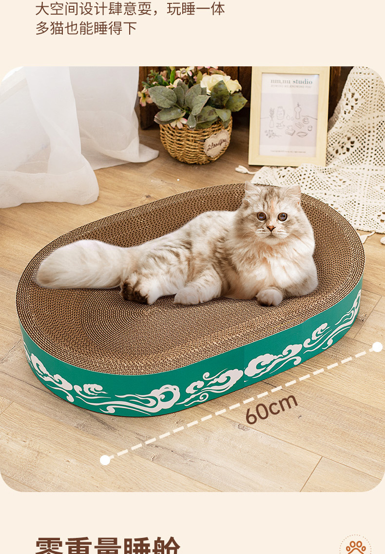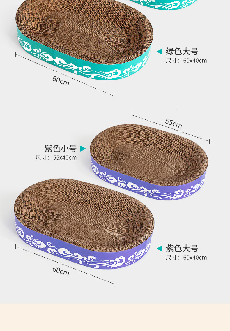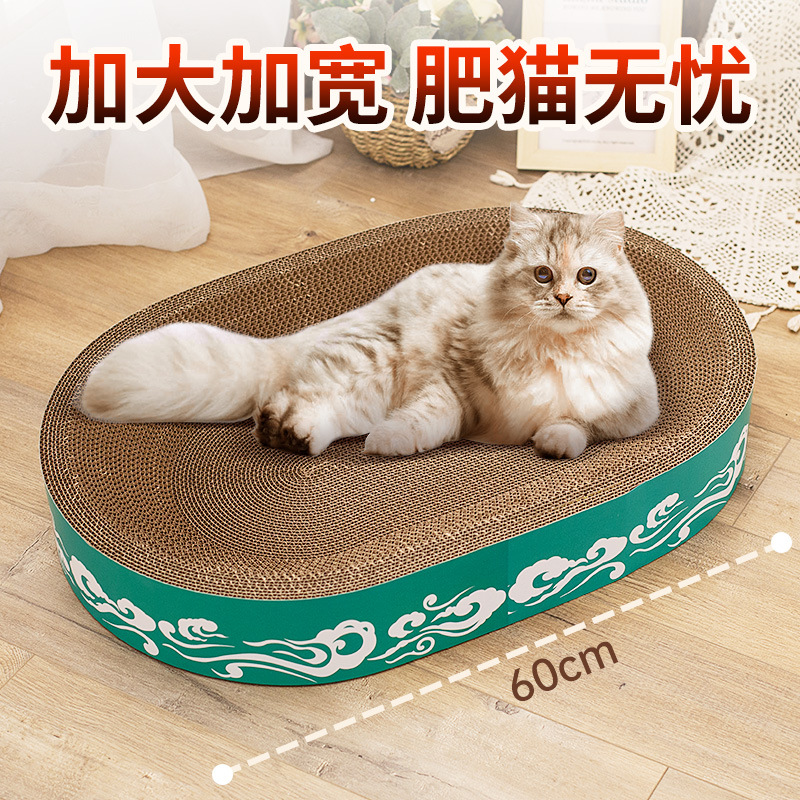 도매 고양이 장난감, 두꺼운 골판지, 부스러기 없는 내구성 있는 고양이 긁는판, 고양이 둥지, 타원형 대형 고양이 긁는판