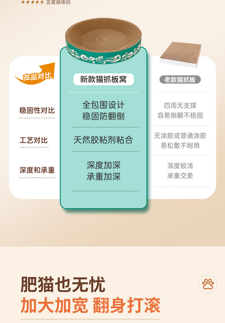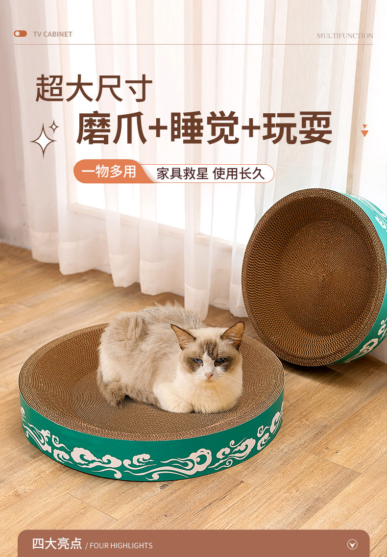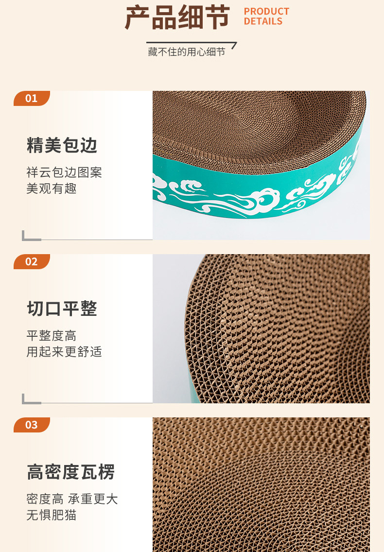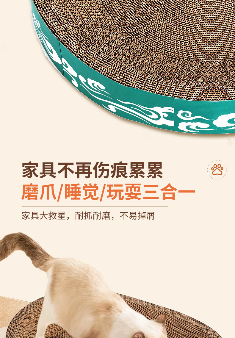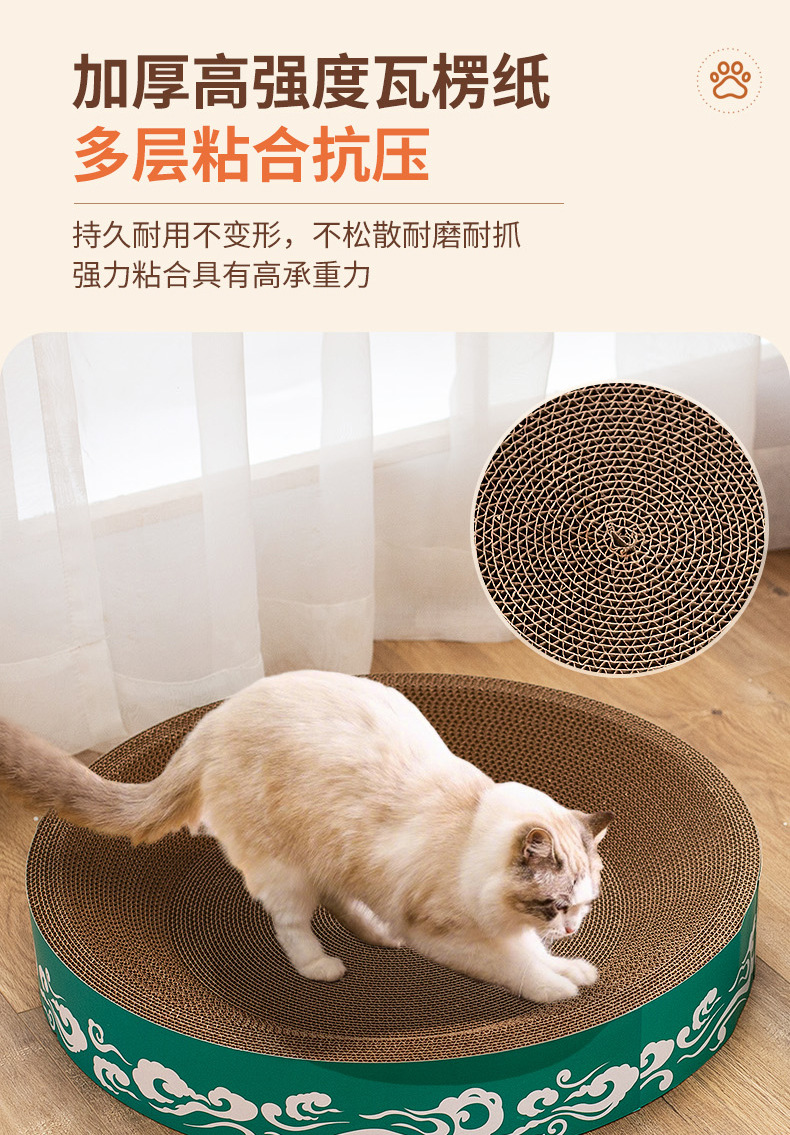 도매 고양이 장난감, 두꺼운 골판지, 부스러기 없는 내구성 있는 고양이 긁는판, 고양이 둥지, 타원형 대형 고양이 긁는판스토어 가기