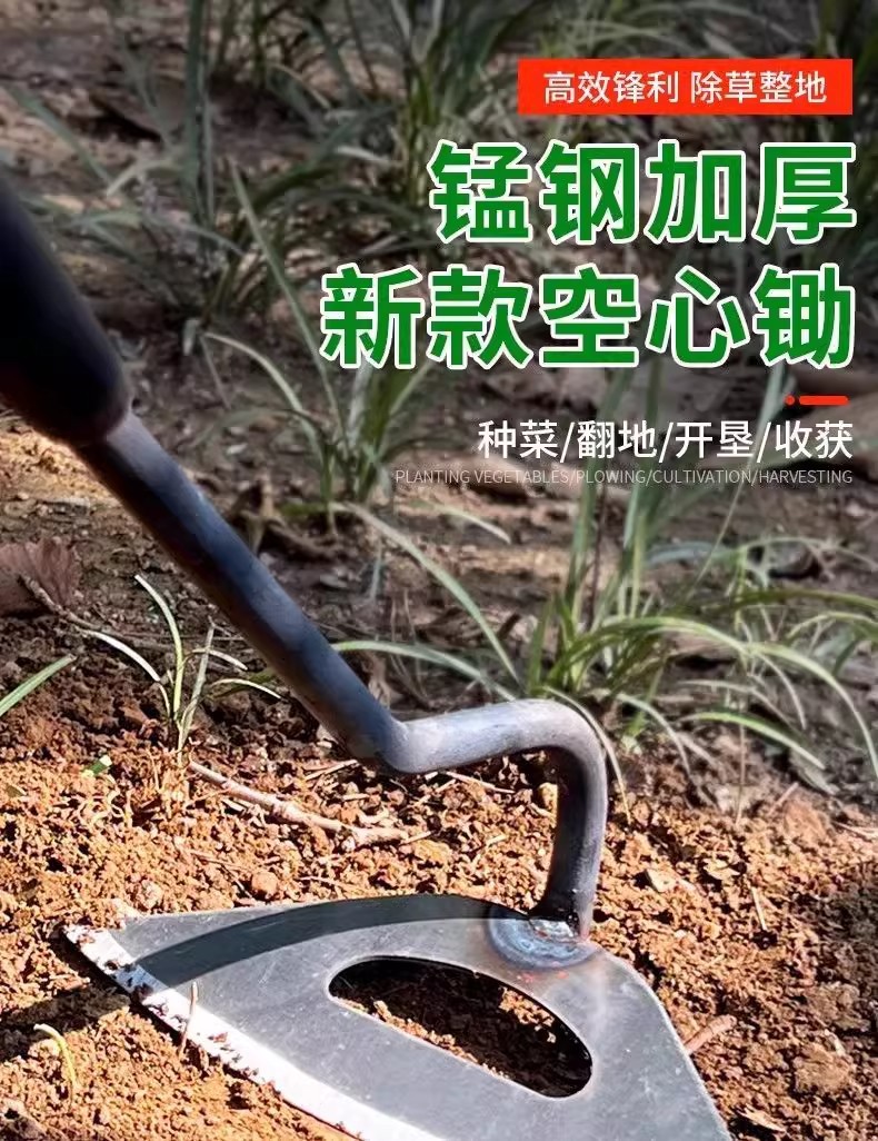 망간 강철 담금질 된 속이 빈 잡초 괭이 농업 작은 괭이 올스틸 날카로운 큰 속이 빈 괭이 야채 정원 제초 도구