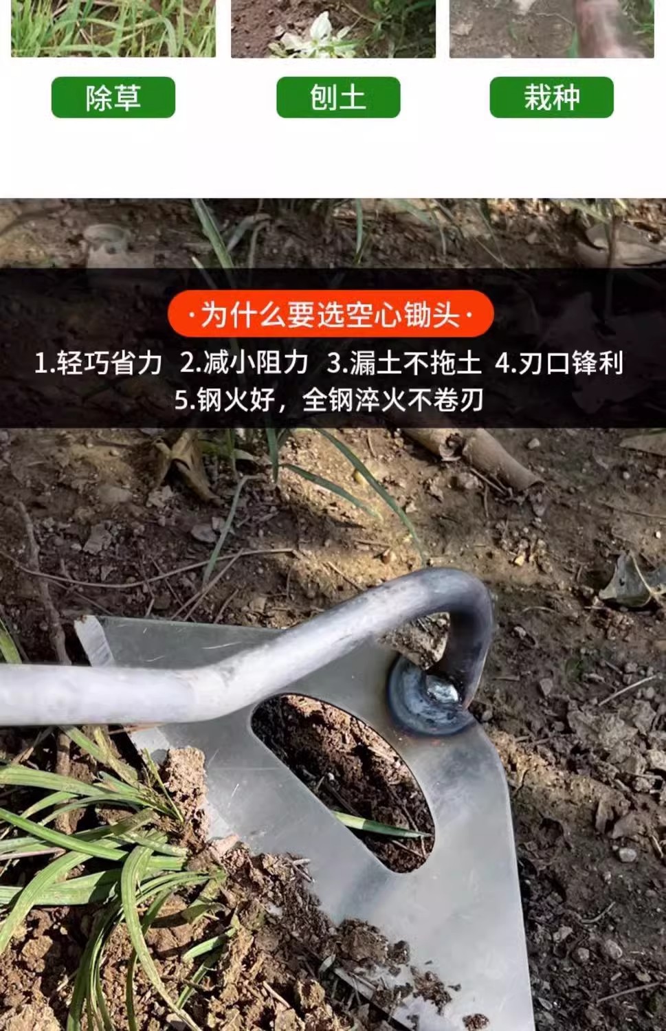 망간 강철 담금질 된 속이 빈 잡초 괭이 농업 작은 괭이 올스틸 날카로운 큰 속이 빈 괭이 야채 정원 제초 도구스토어 가기