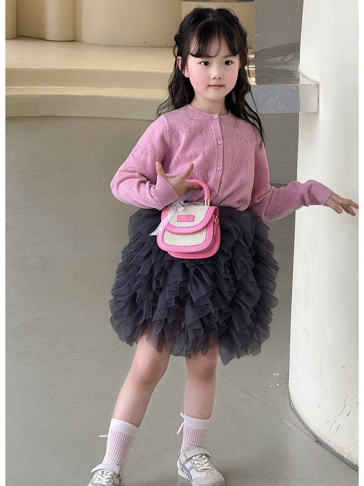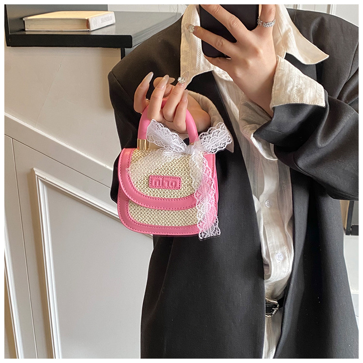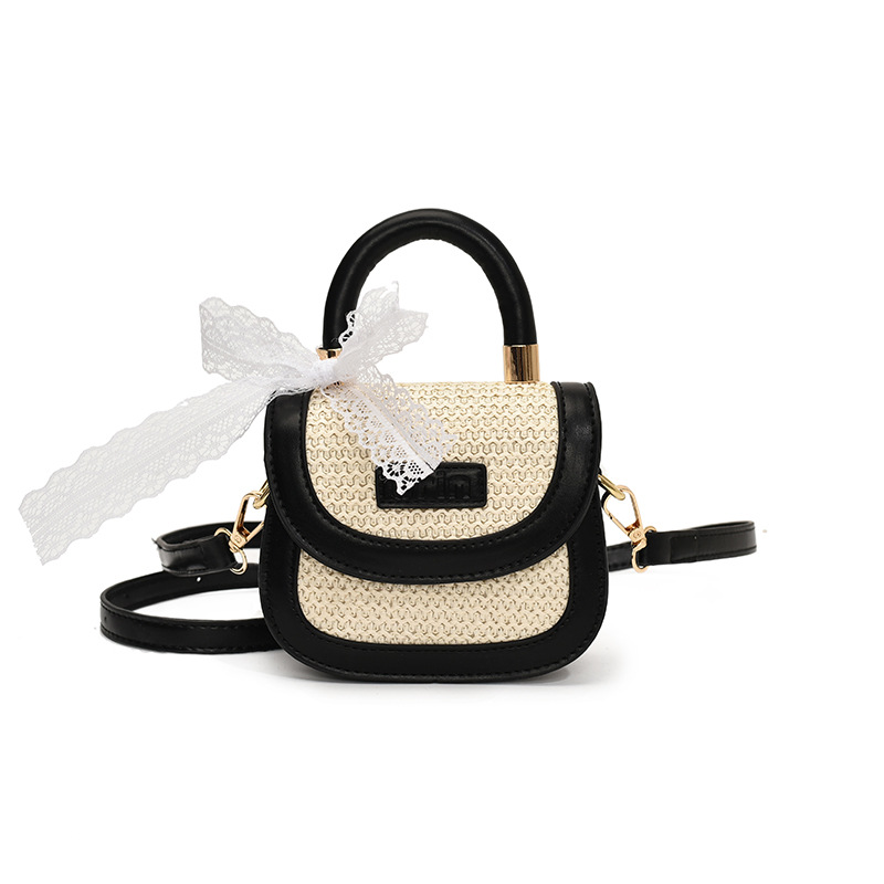 소녀와 어린이를 위한 한국식 틈새 디자인 밀짚 대비 색상 핸드백, 패셔너블한 공주 크로스바디 립스틱 헤드폰 가방