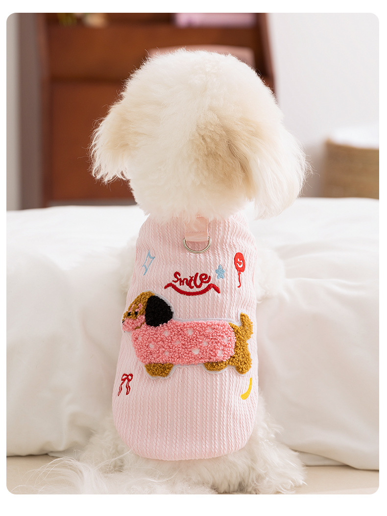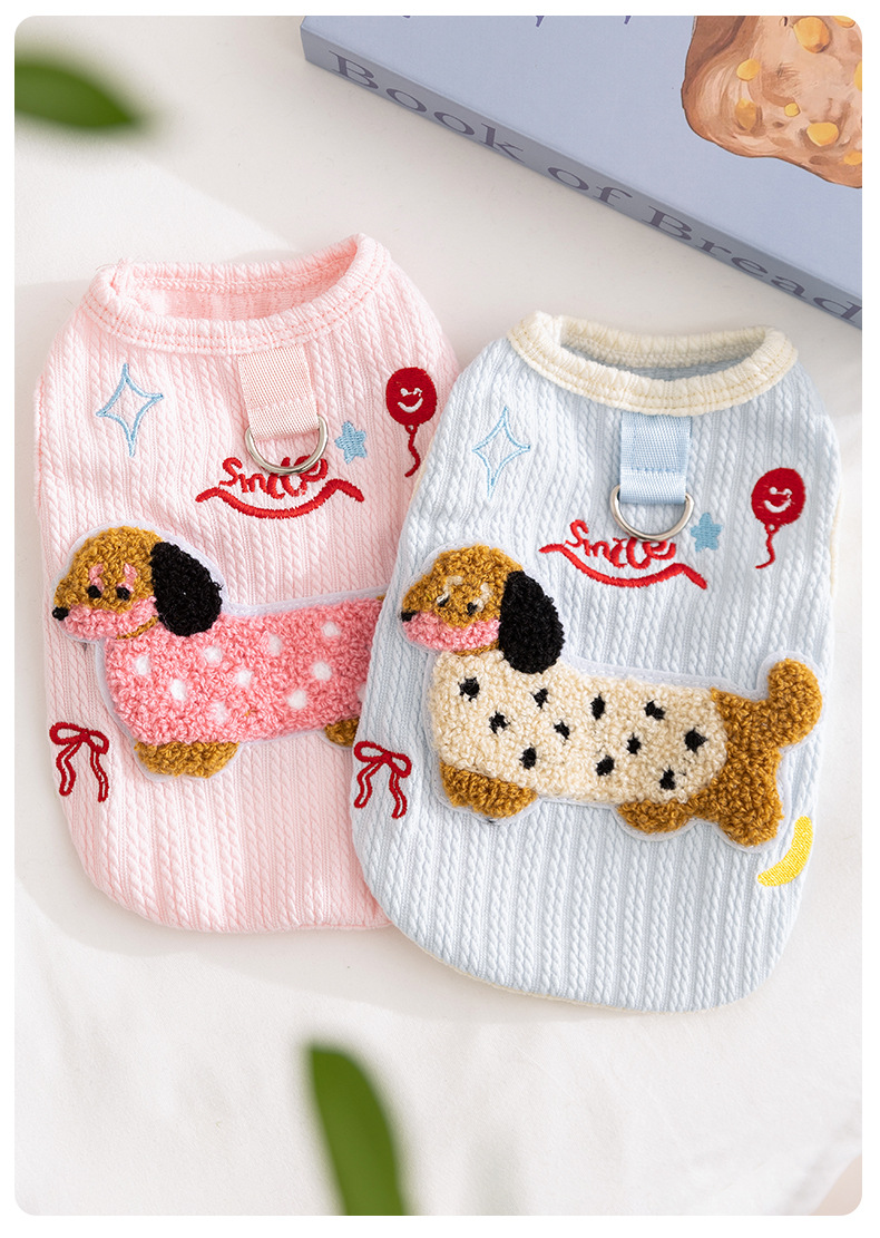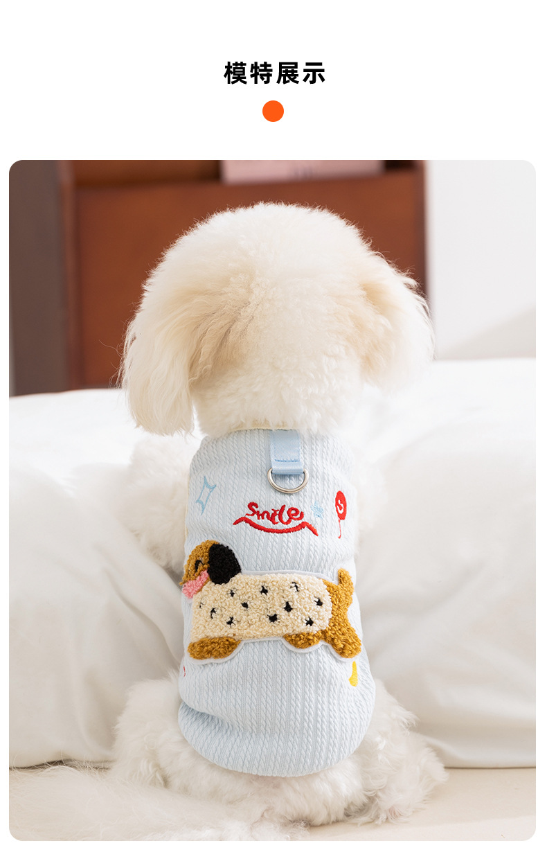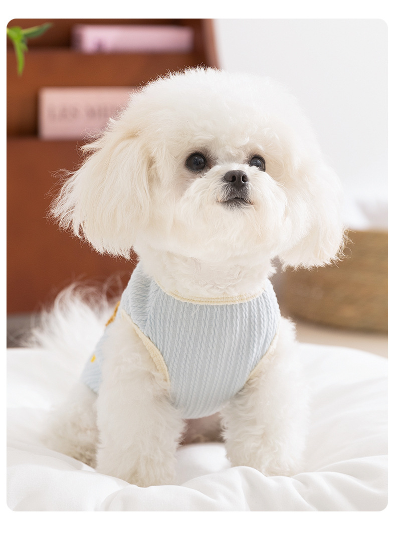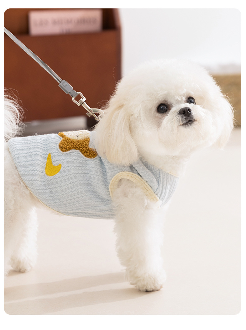 봄과 여름 귀여운 재미 강아지 수건 수 놓은 테디 빅시 옹 비극적 인 조끼 작은 개 고양이 애완 동물 옷