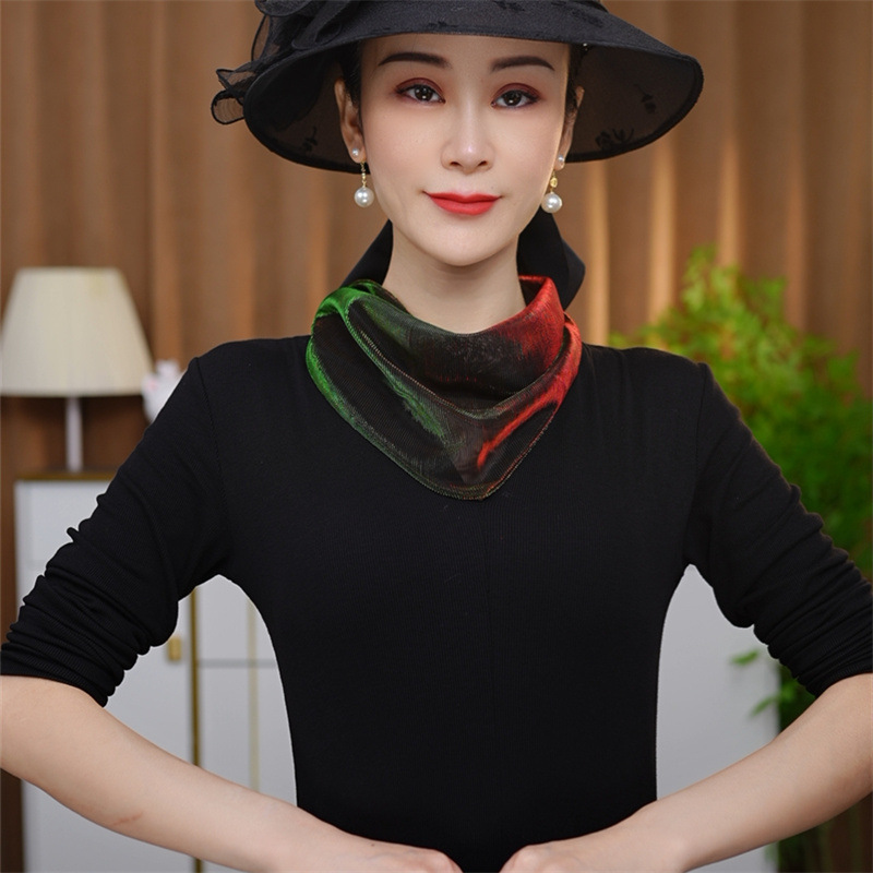 한국 스타일 새로운 도착 올매치 다채로운 구슬 목 유행 작은 실크 스카프 봄과 가을 삼각형 스카프
