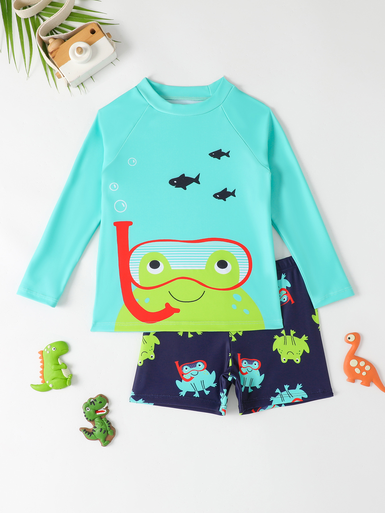 어린이 수영복 소년 분할 수영복 2025 새로운 긴 소매 만화 비치 바지 빠른 건조 선 스크린 소년 수영복