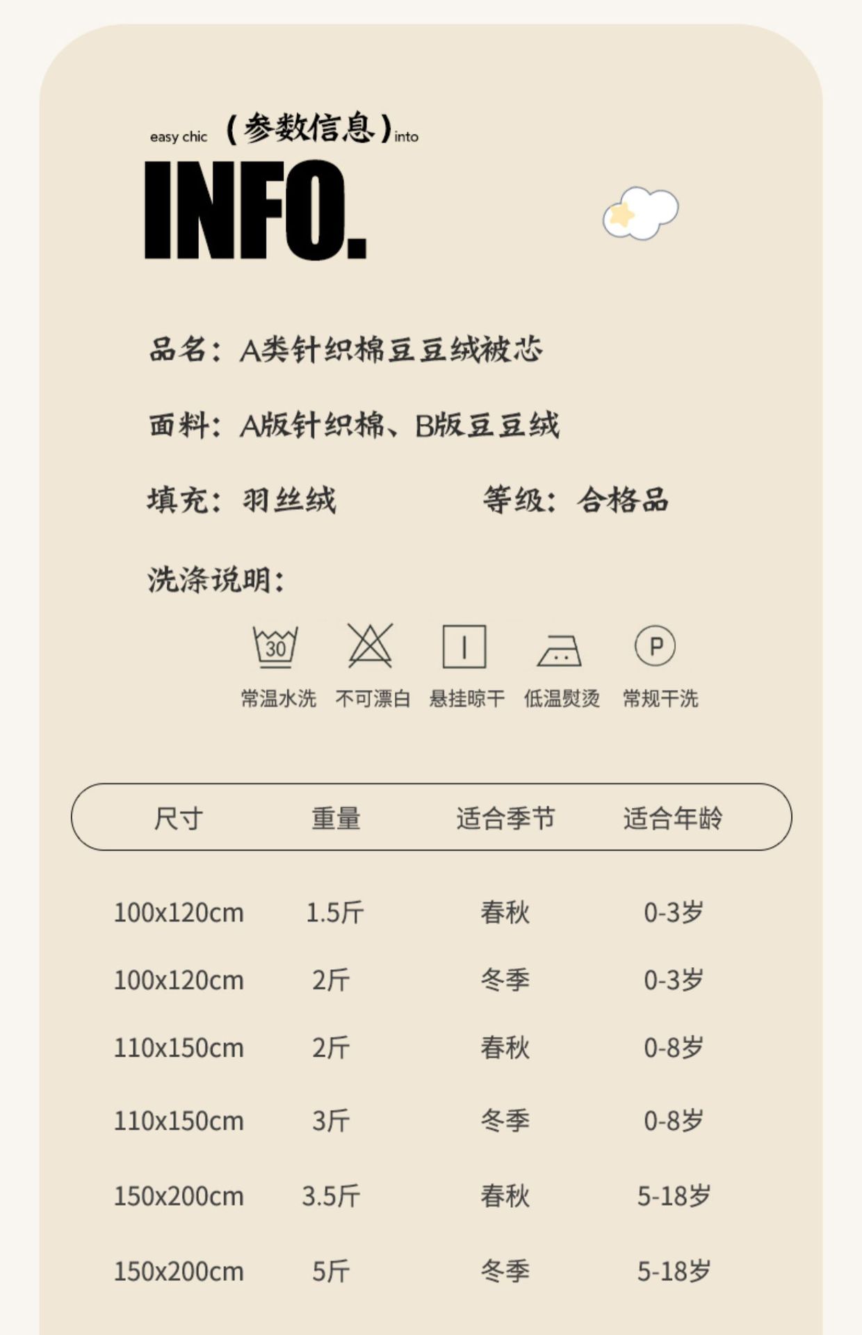 • 110*150cm 약 1.0kg 봄, 가을 이불 (0-7세에게 적합)
