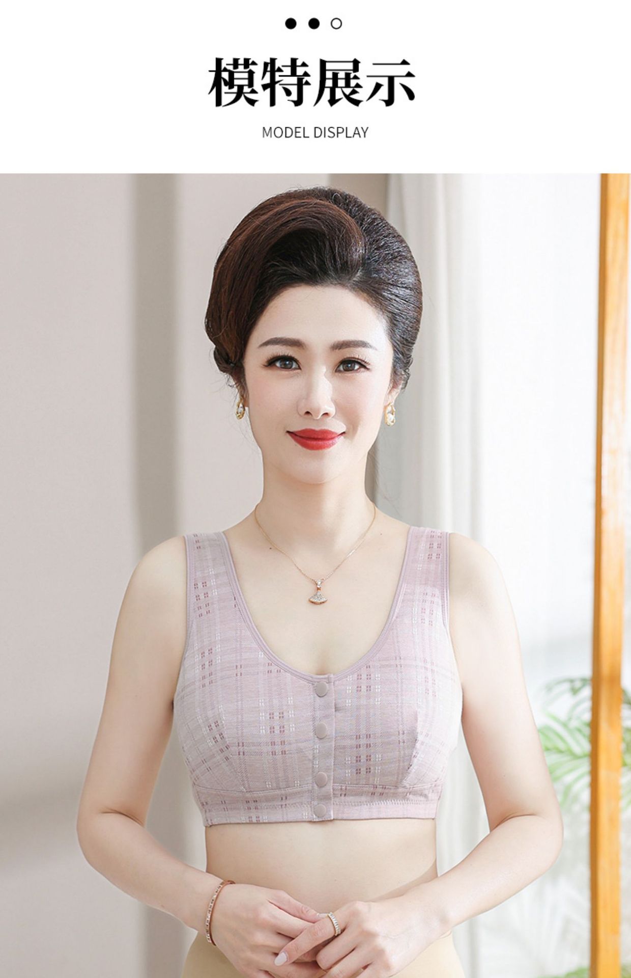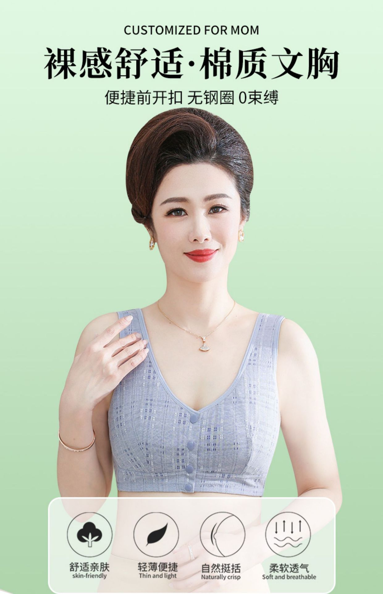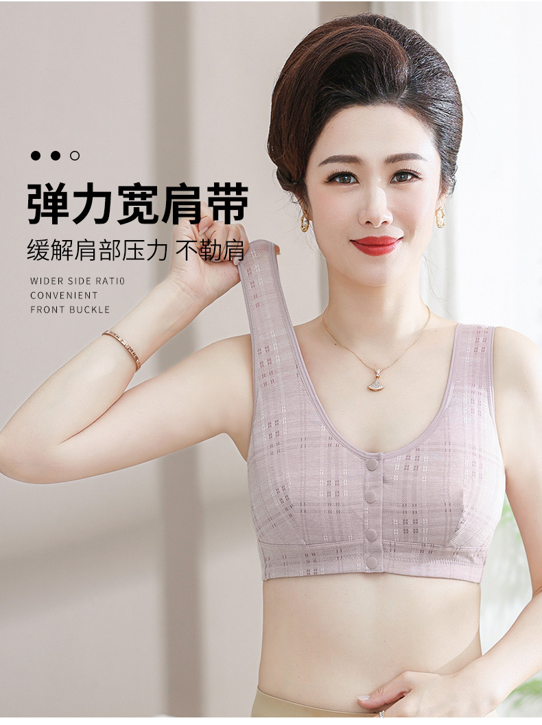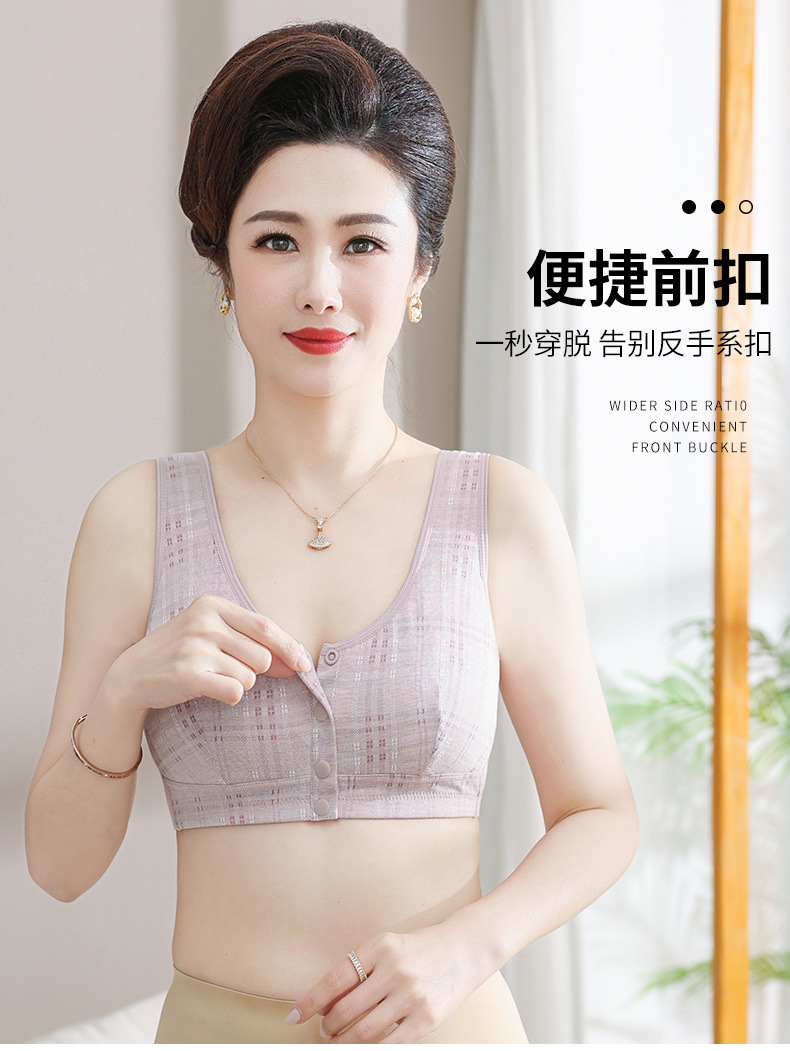 중년 및 노인 어머니 속옷 여성의 여름 얇은 조끼 스타일 브라 중년 여성을위한 순수 면화 플러스 사이즈 프론트 버클 브라스토어 가기