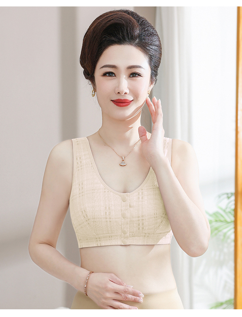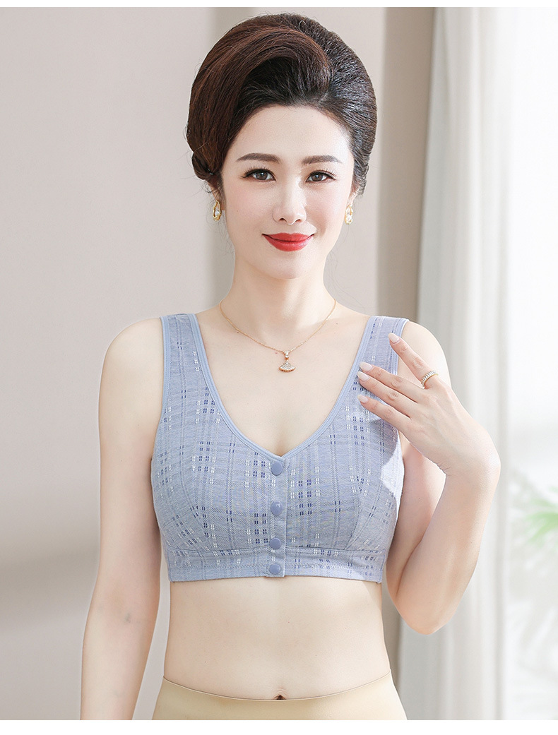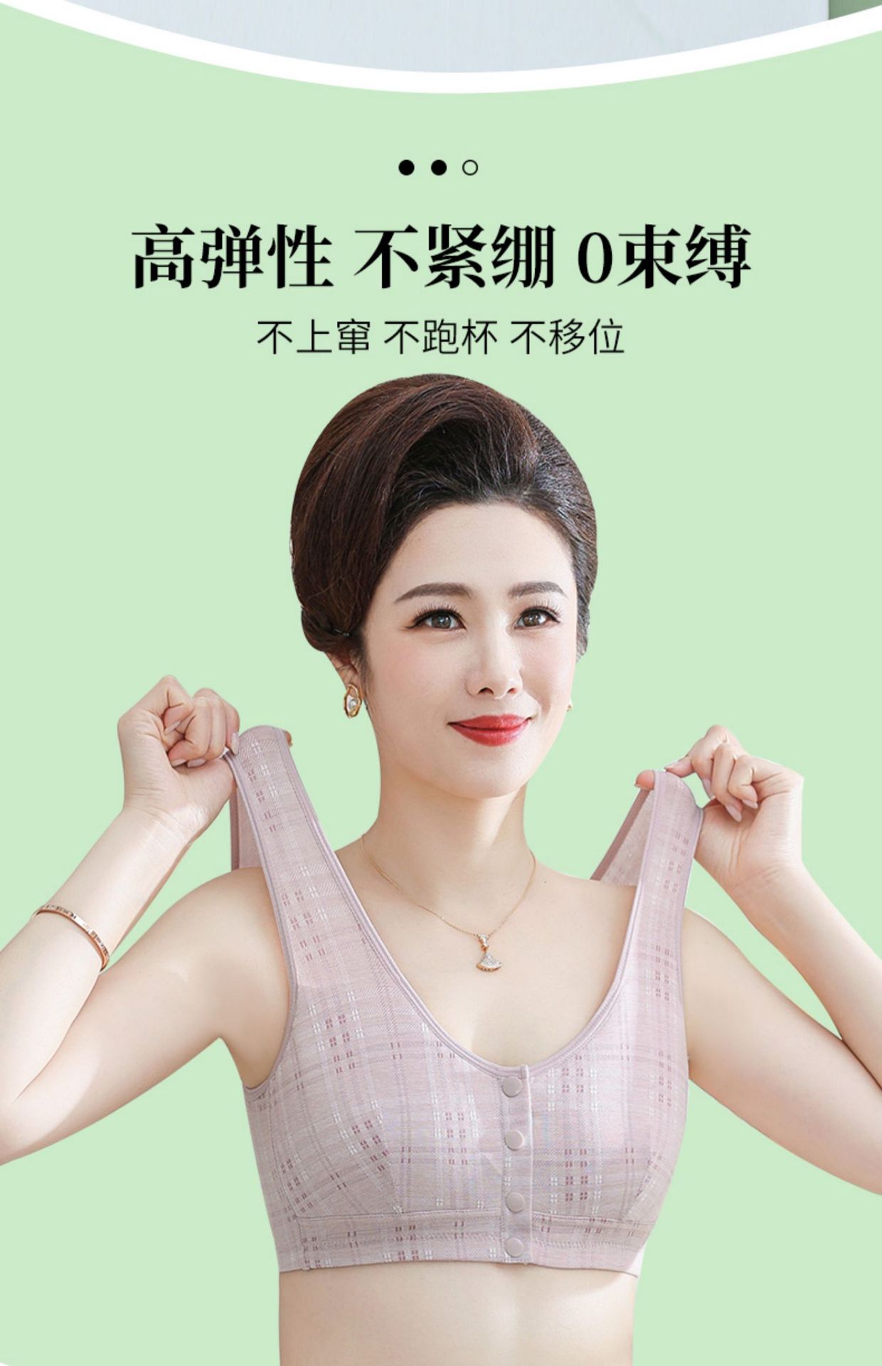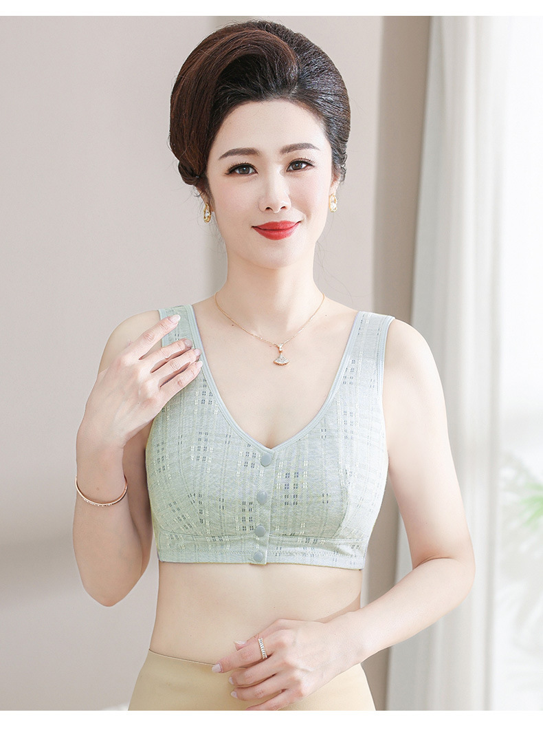 중년 및 노인 어머니 속옷 여성의 여름 얇은 조끼 스타일 브라 중년 여성을위한 순수 면화 플러스 사이즈 프론트 버클 브라스토어 가기