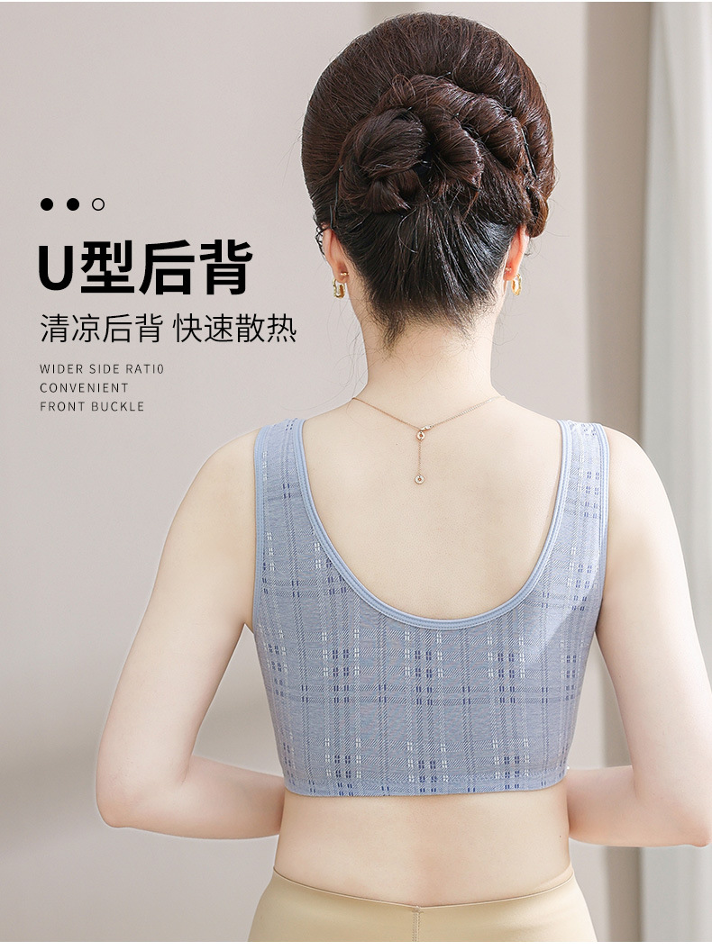 중년 및 노인 어머니 속옷 여성의 여름 얇은 조끼 스타일 브라 중년 여성을위한 순수 면화 플러스 사이즈 프론트 버클 브라