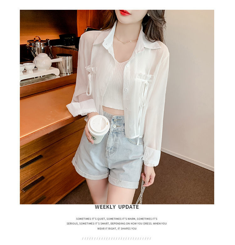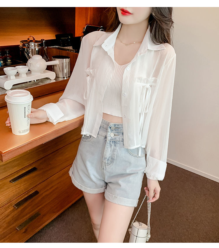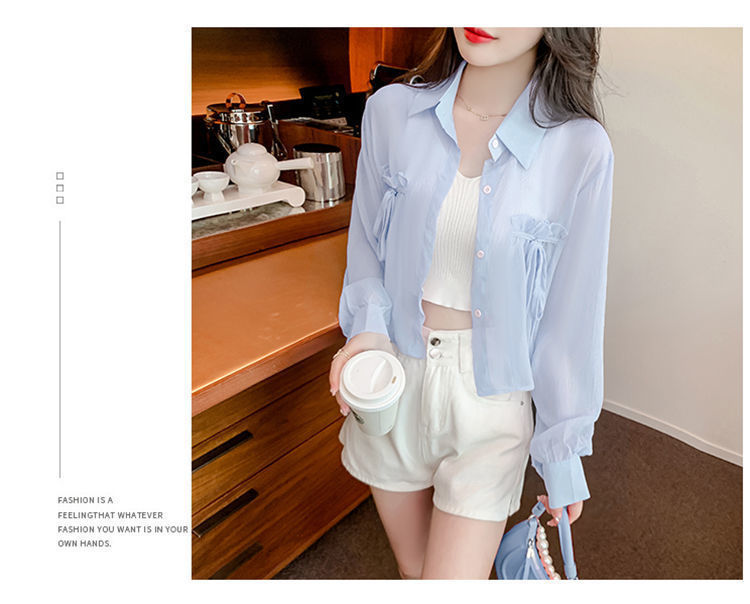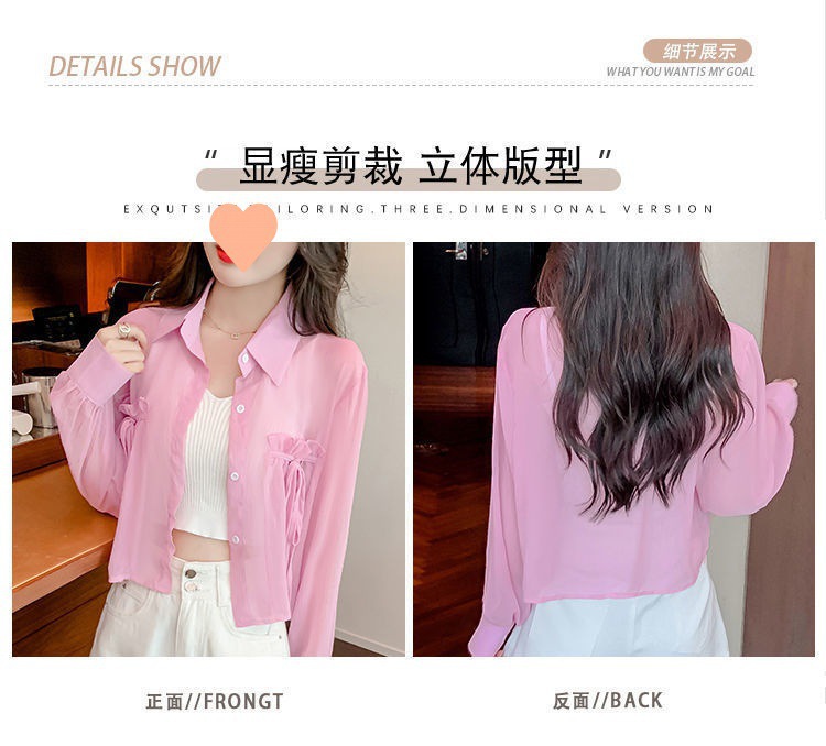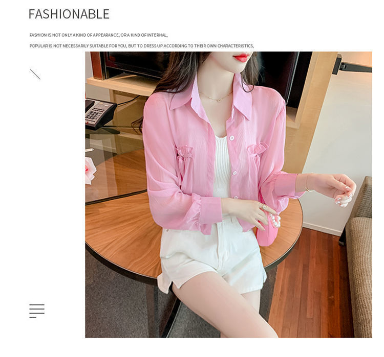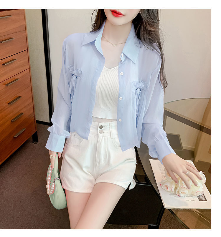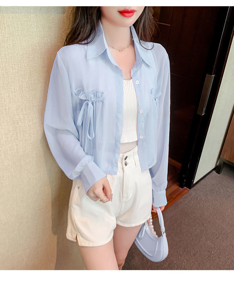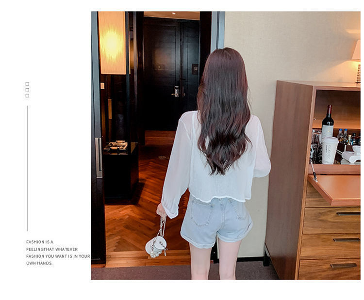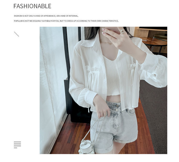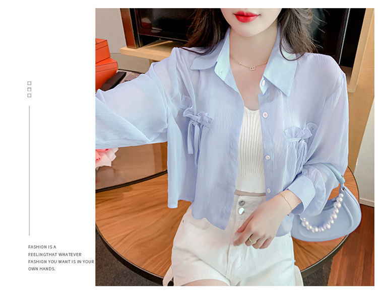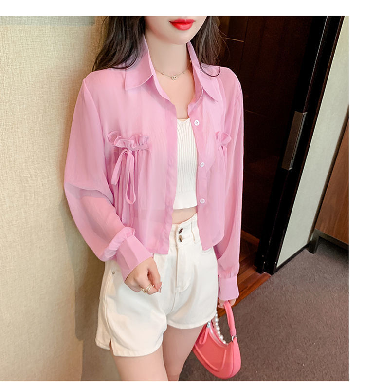 태양 보호 의류 여성의 여름 외부 카디건 디자인 활 셔츠 여성의 짧은 탑 얇은 쉬폰 셔츠 코트