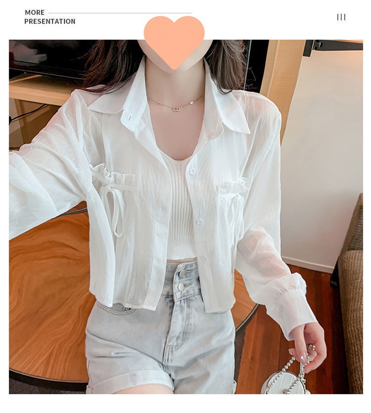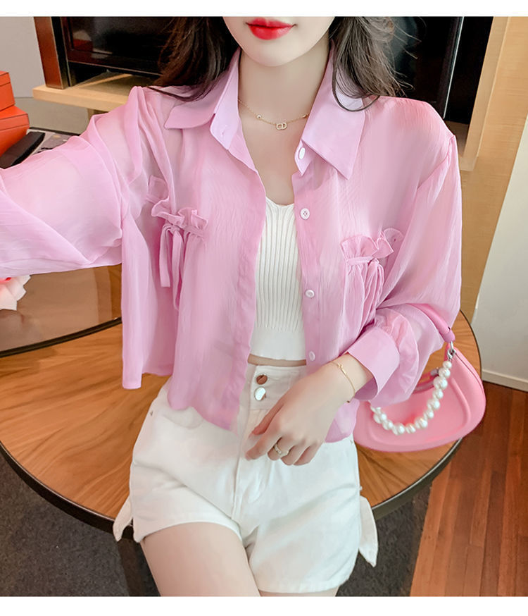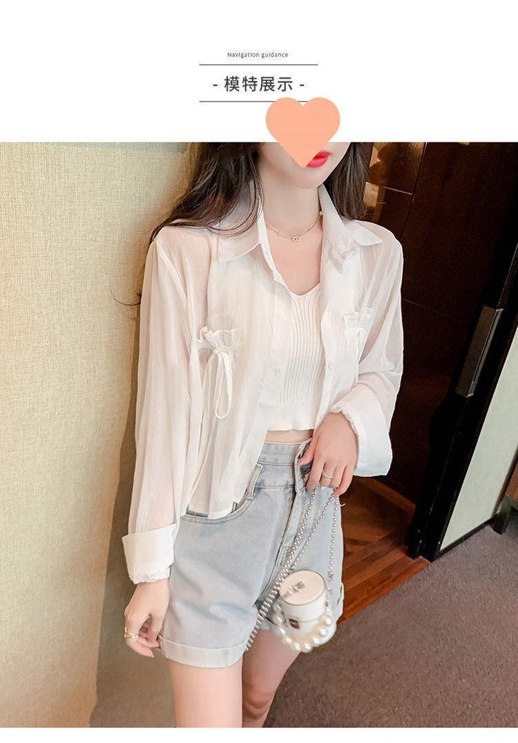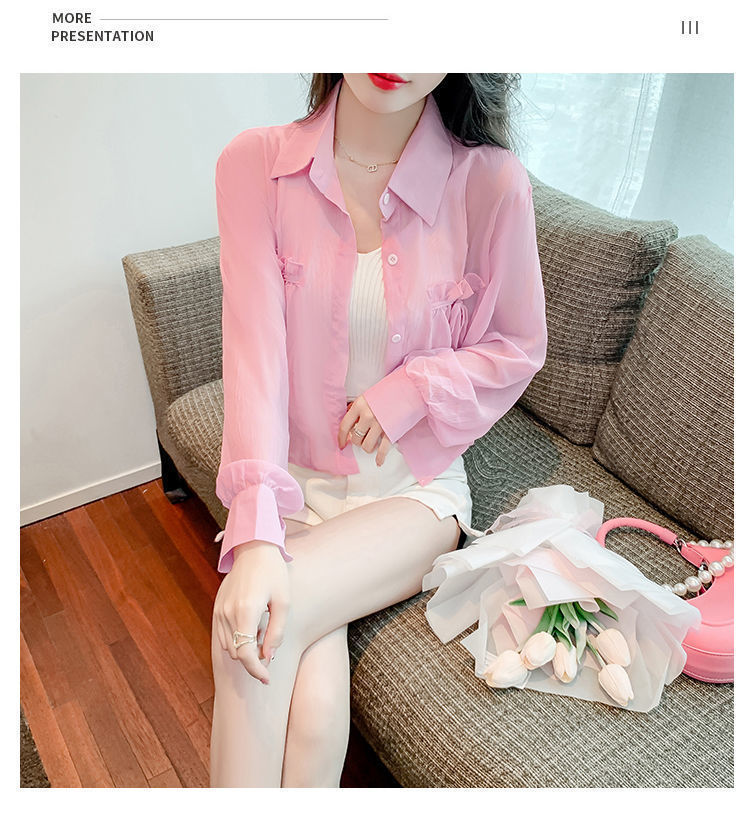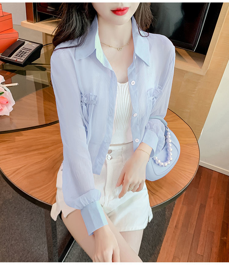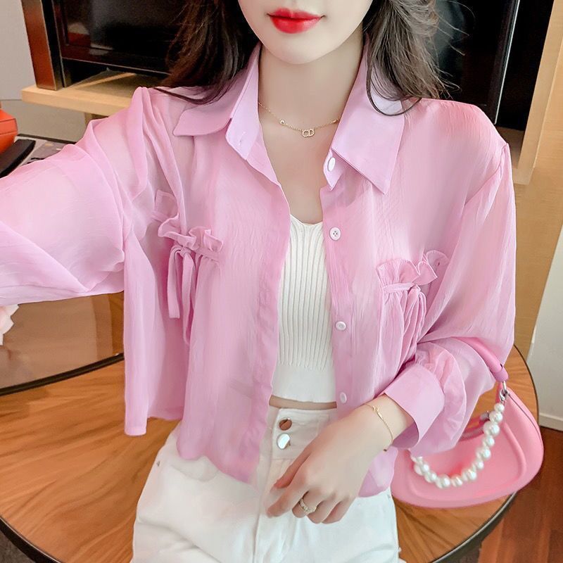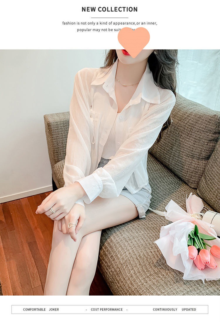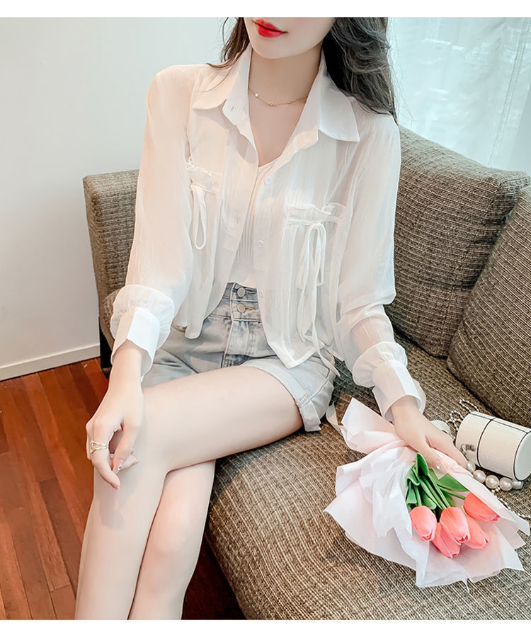 태양 보호 의류 여성의 여름 외부 카디건 디자인 활 셔츠 여성의 짧은 탑 얇은 쉬폰 셔츠 코트