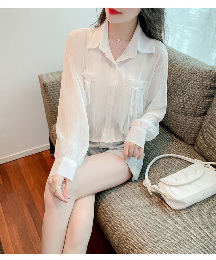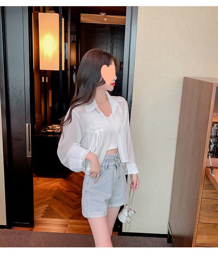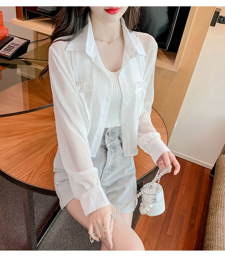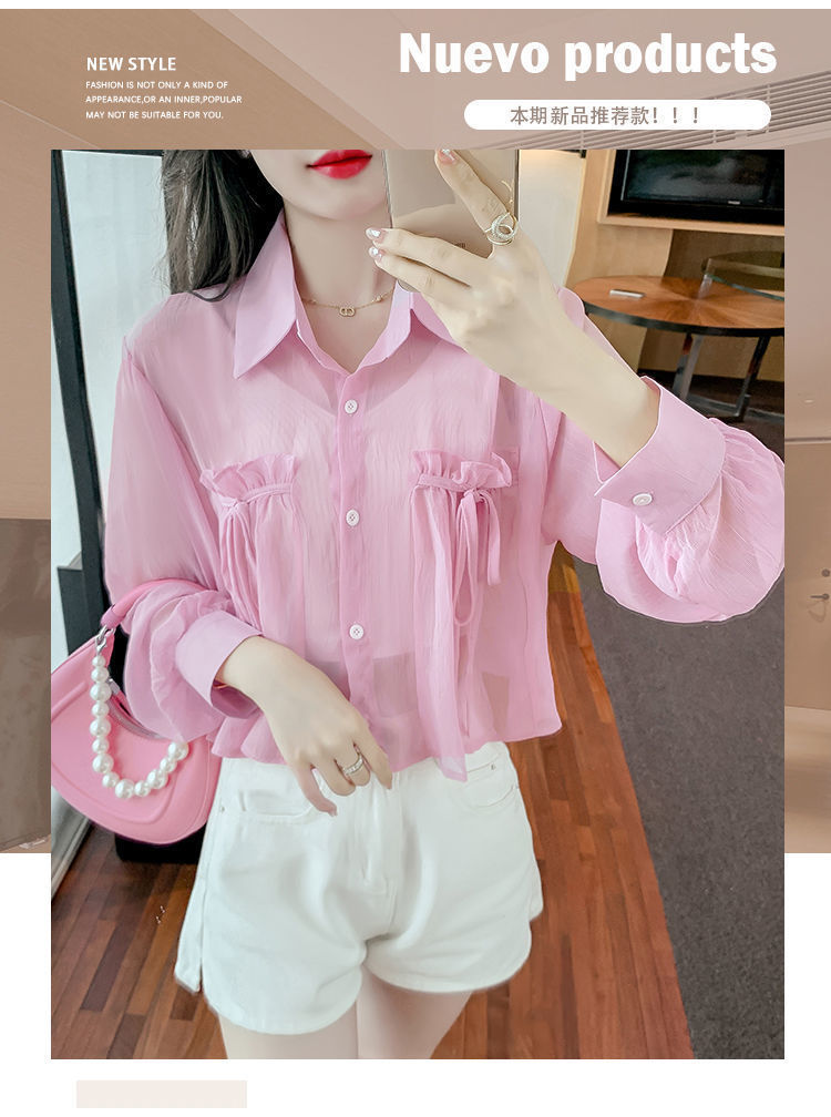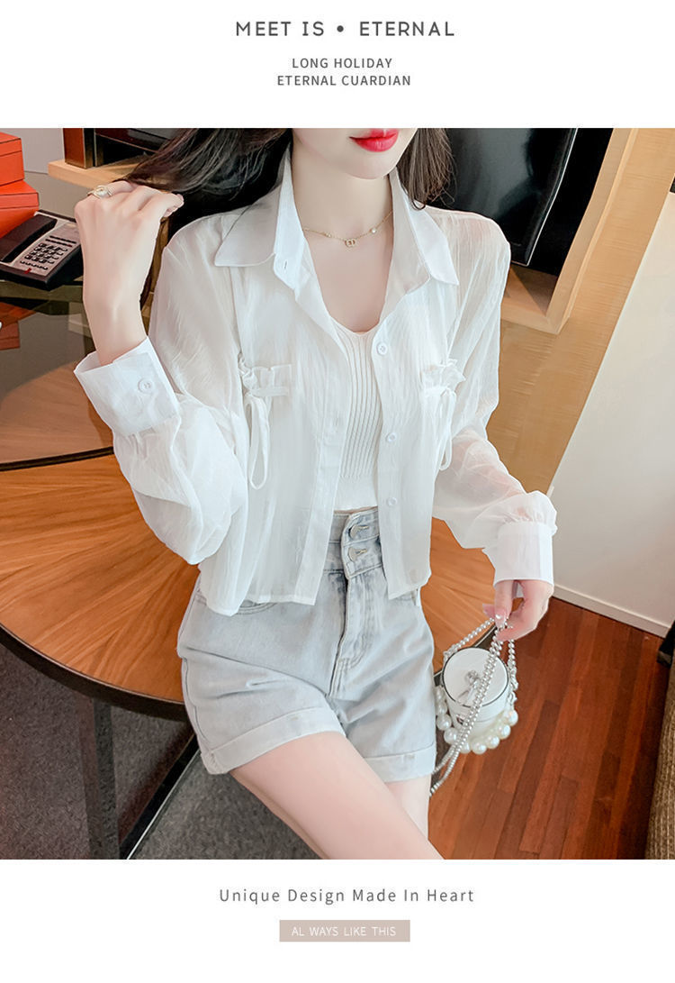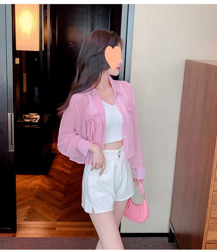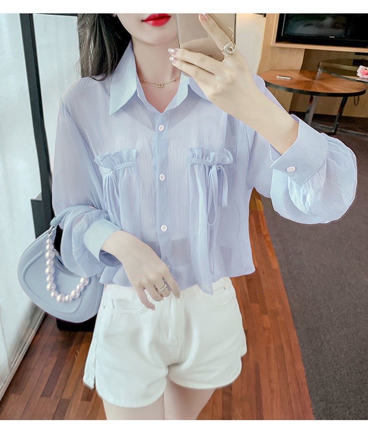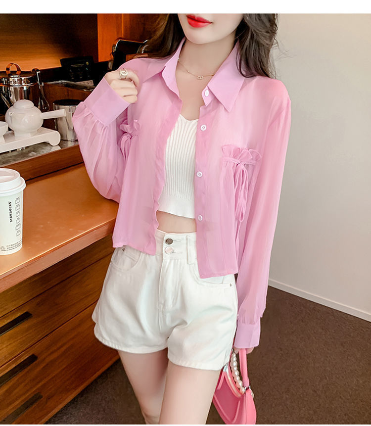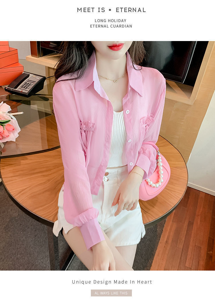 태양 보호 의류 여성의 여름 외부 카디건 디자인 활 셔츠 여성의 짧은 탑 얇은 쉬폰 셔츠 코트