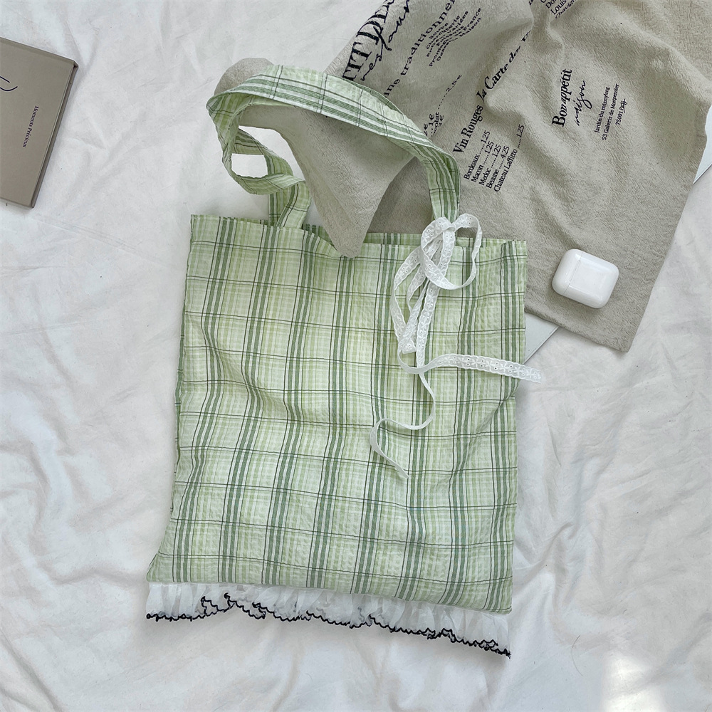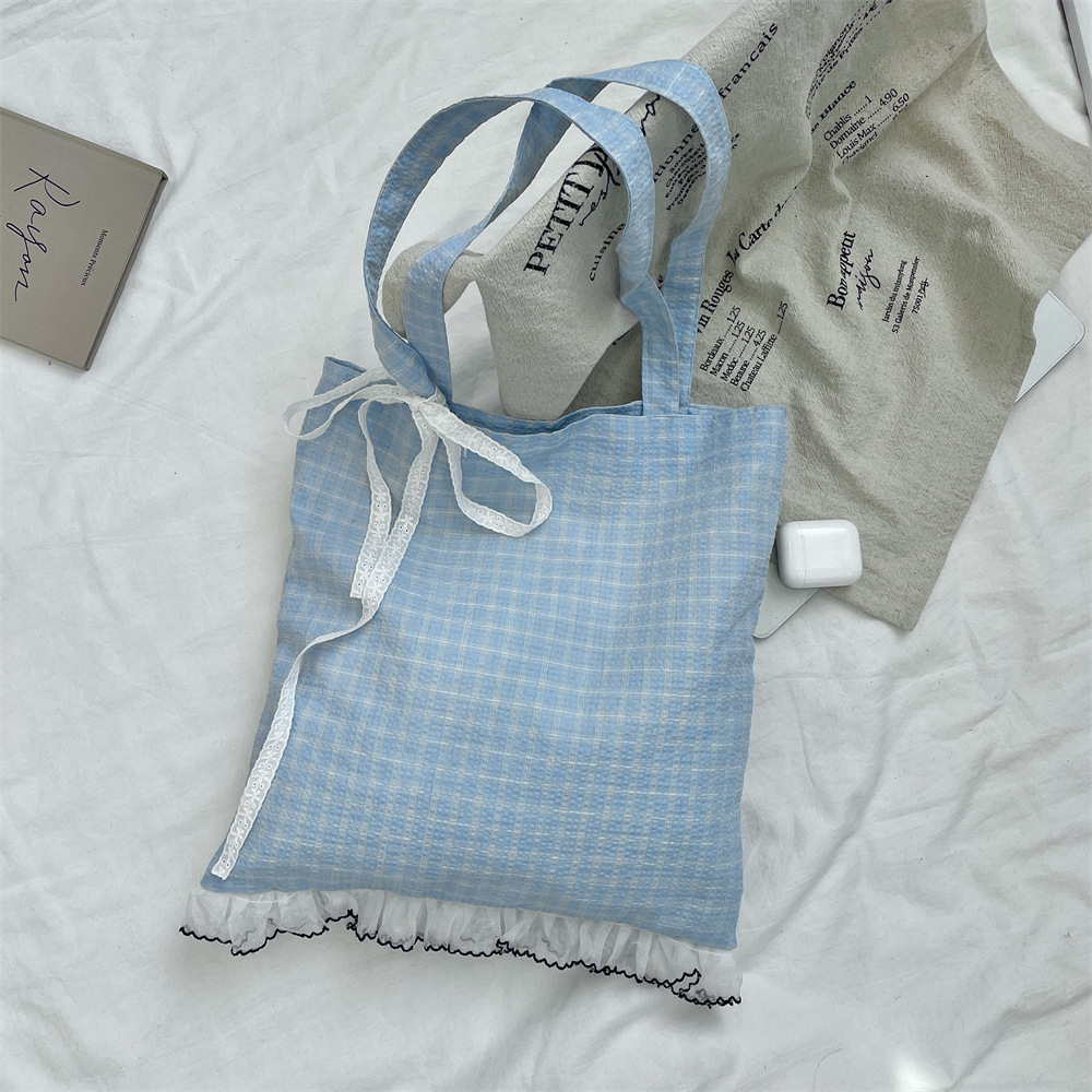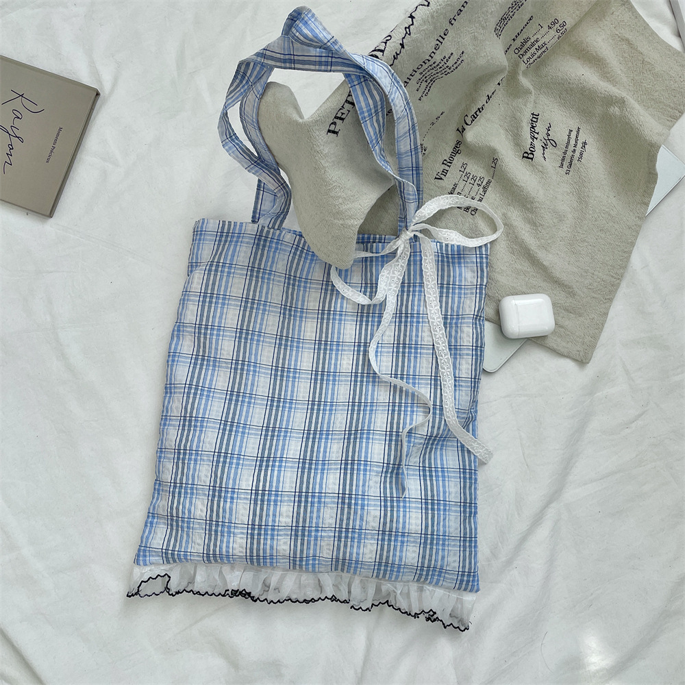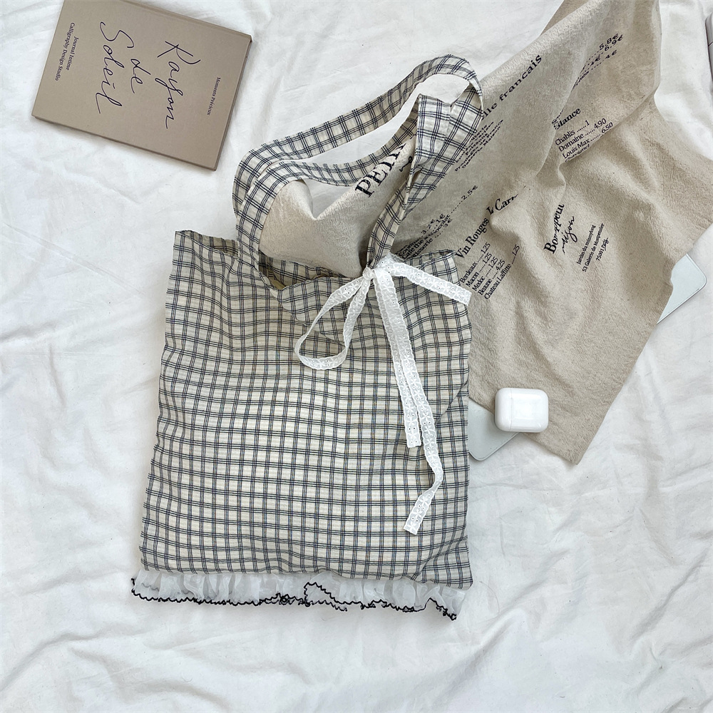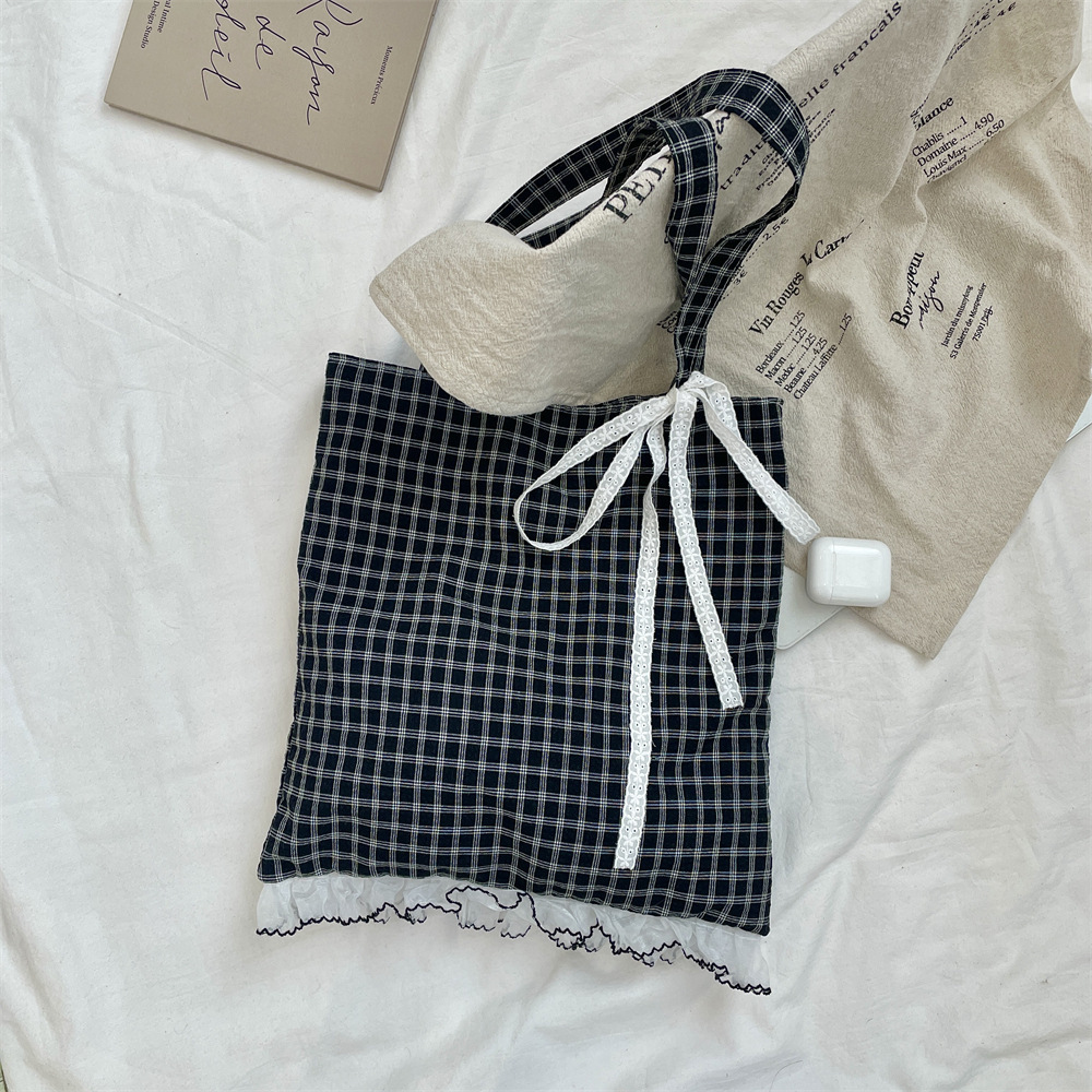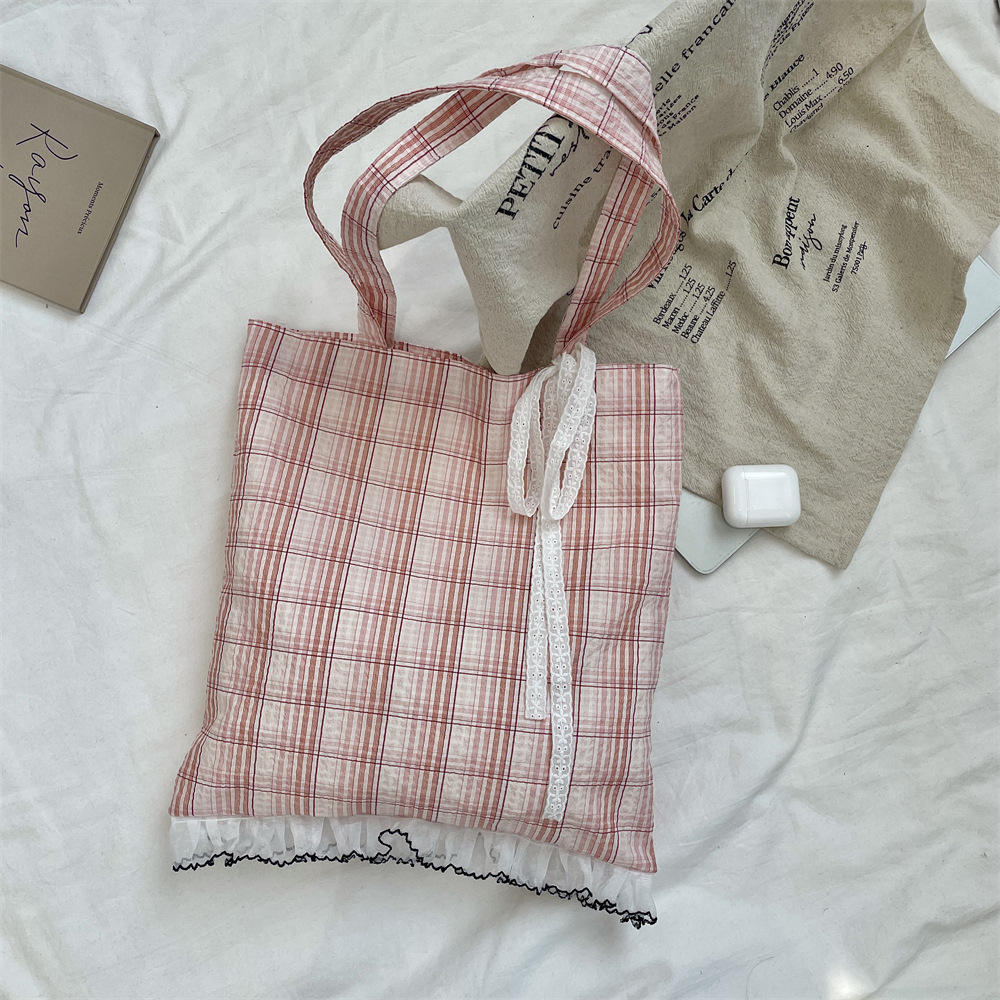 53173 새로운 틈새 소녀의 레이스 활 격자 무늬 어깨 가방 여성의 대용량 통근 토트 백스토어 가기