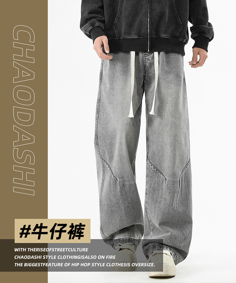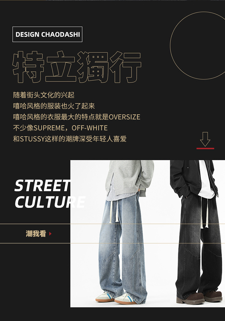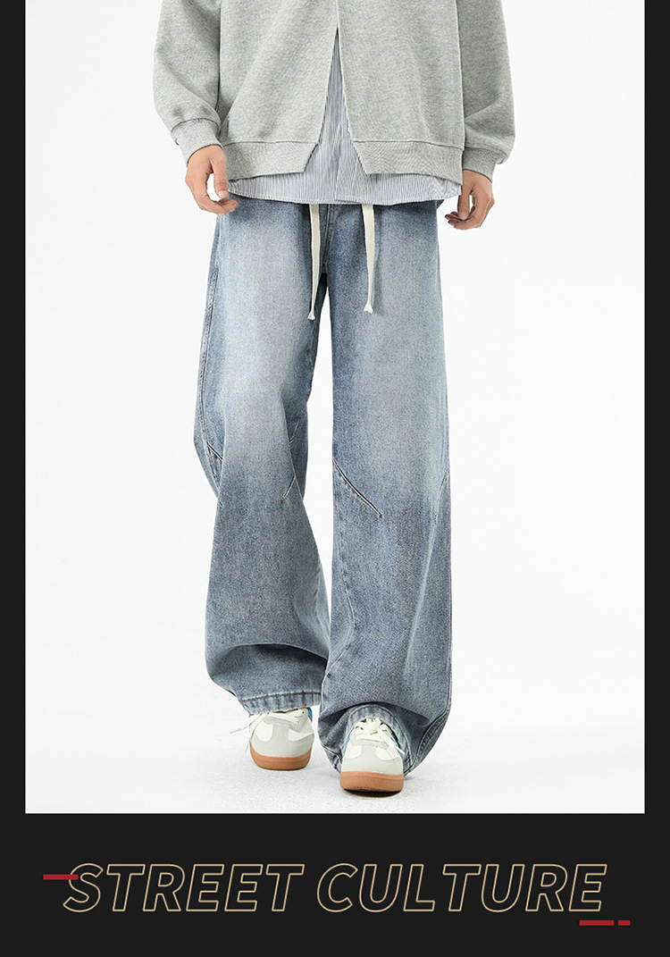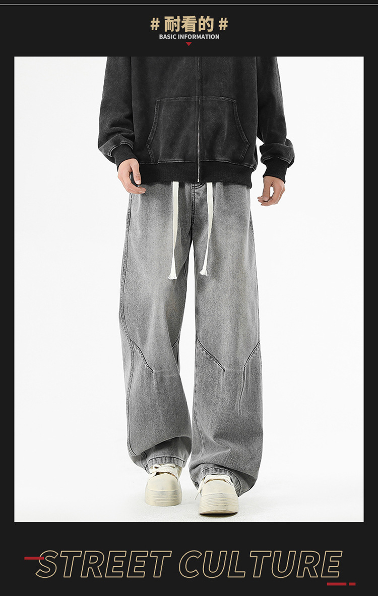 청바지 남성 가을과 겨울 미국 틈새 디자인 센스 트렌디 브랜드 느슨한 스트레이트 와이드 레그 캐주얼 올 매치 롱 팬츠스토어 가기